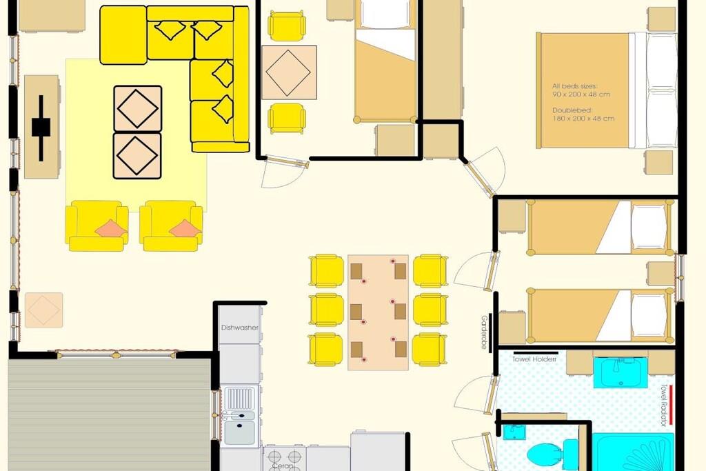 Holiday house for 5 people, 70m², right by the golf course and the sea in the Wulfener Hals holiday park on the Baltic Sea island of Fehmarn, first occupancy in May 2015.