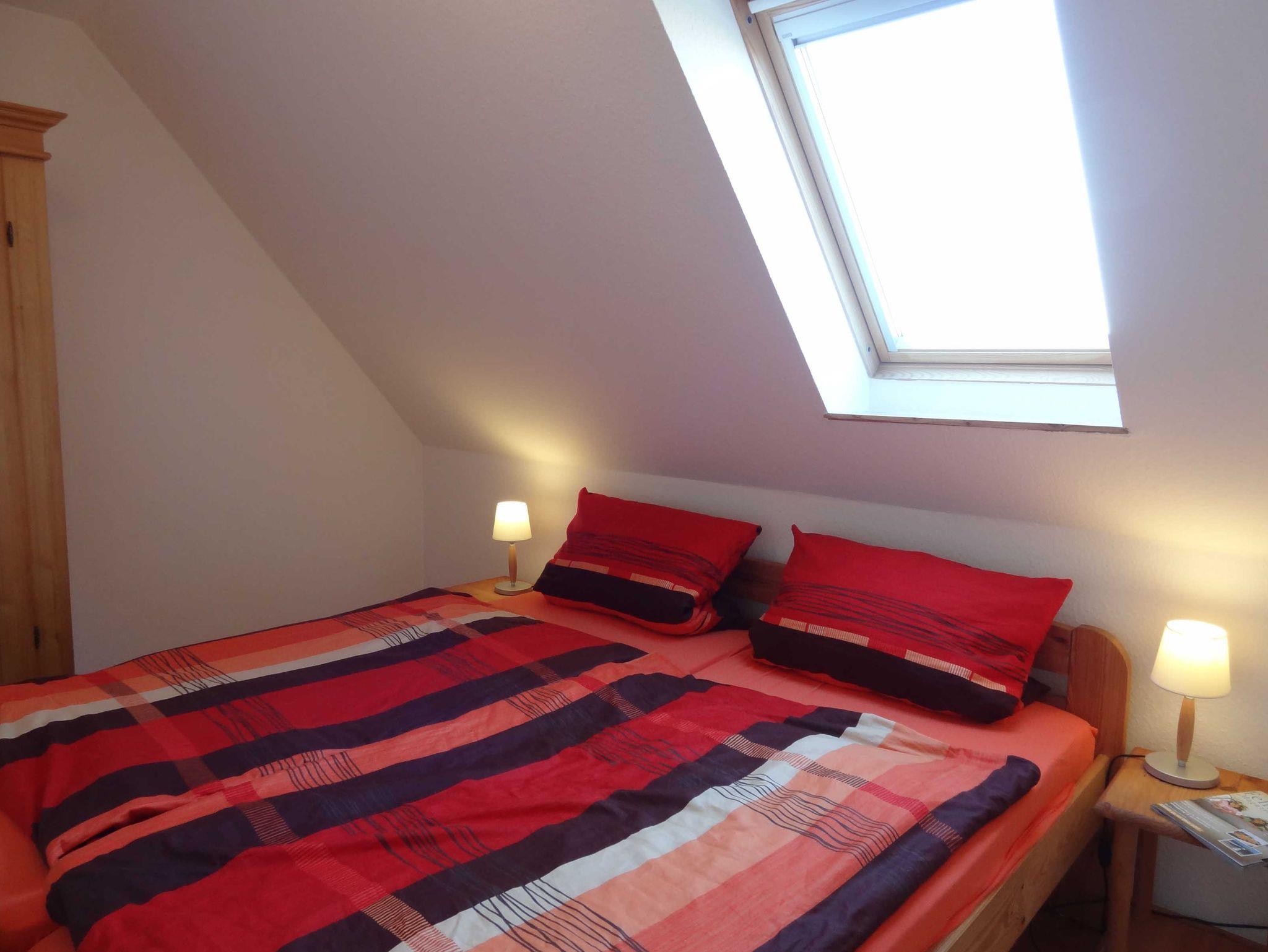 Die Ferienwohnung im Obergeschoß ist mit ca. 57 qm für bis zu 4 Personen ausgelegt und verfügt über einen Wohnraum mit Küchenzeile incl. Spülmaschine, ein Bad mit Dusche und zwei Schlafzimmer. Weitere Ausstattungsmerkmale: 42 Zoll Full-HD TV, Telefon kostenlos ( deutsches Festnetz außer Sondernummern ), PC-Anschluss DSL kostenlos, PKW-Stellplatz, Fahrradstellplatz, Waschmaschinennutzung, eigener Balkon mit Meerblick.