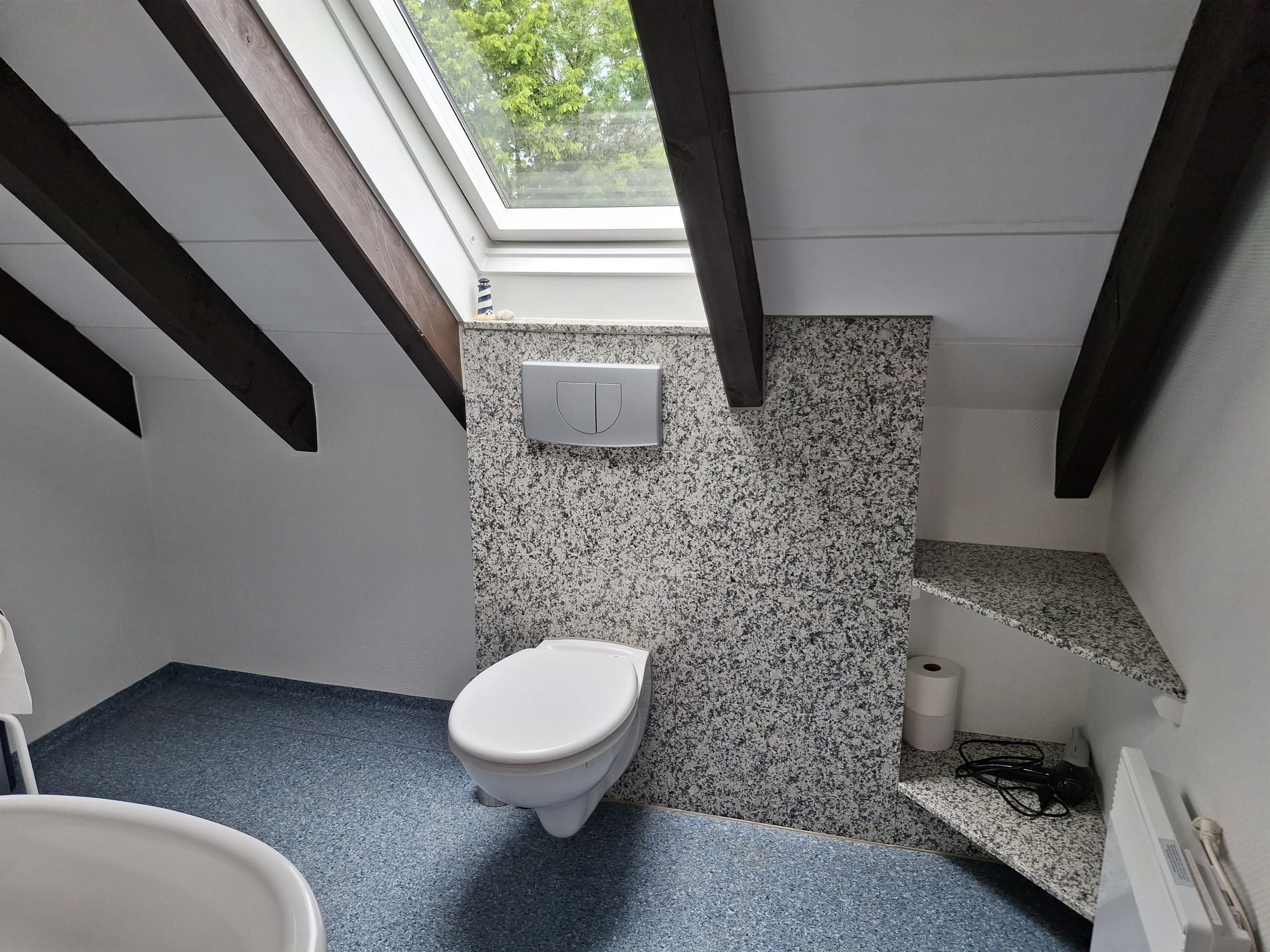 Die Wohnung befindet sich im 1. Geschoss. Sie verfügt über einen großen Balkon mit Gartenmöbeln/Sitzauflagen. Der Balkon hat einen Strandkorb, Sonnenschirm und Grill.