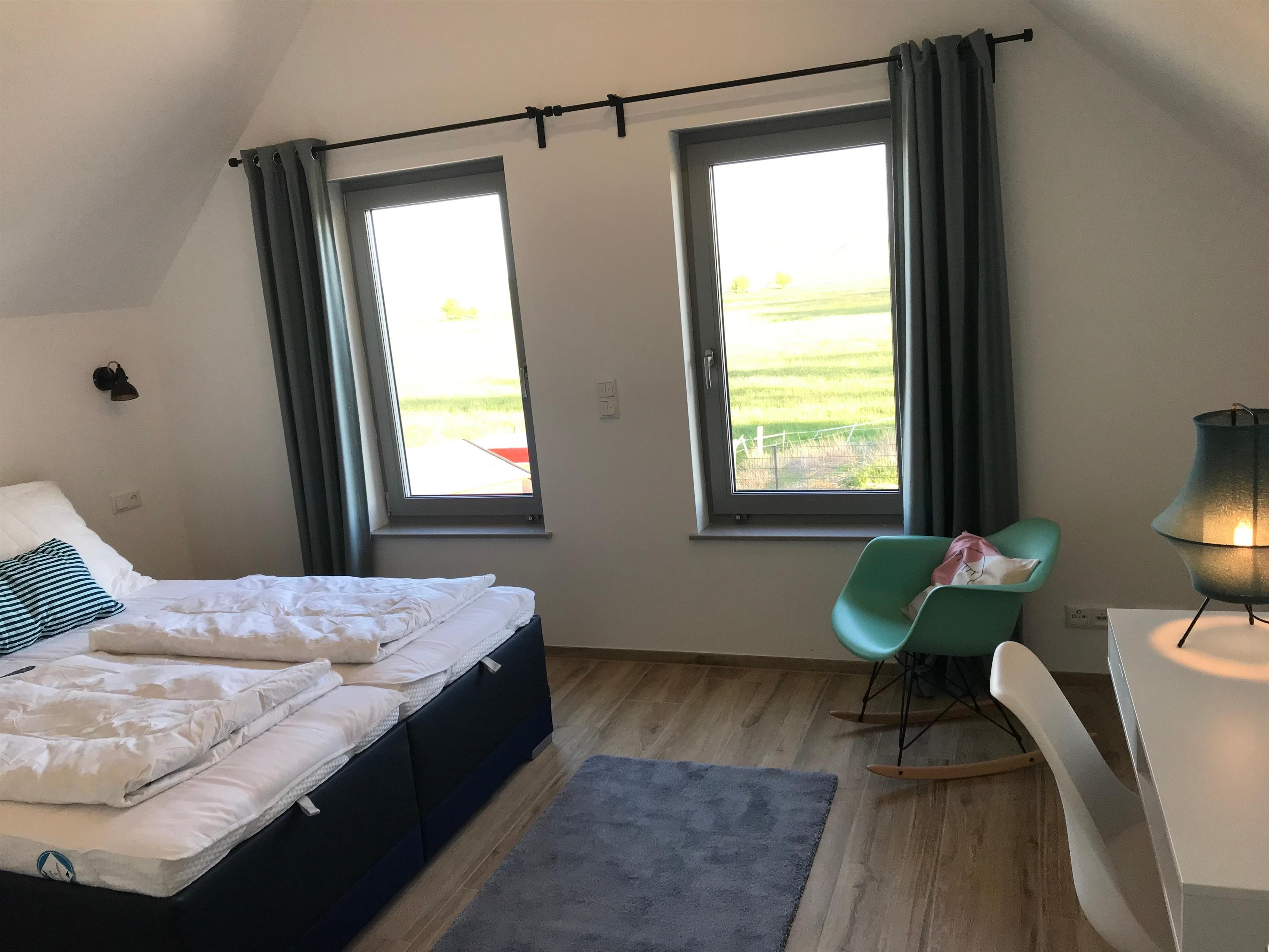 OG: 1 Einschlafzimmer mit Doppelbett 160x200 (2x80x200) mit Platz für ein mitgebrachtes Babybett.