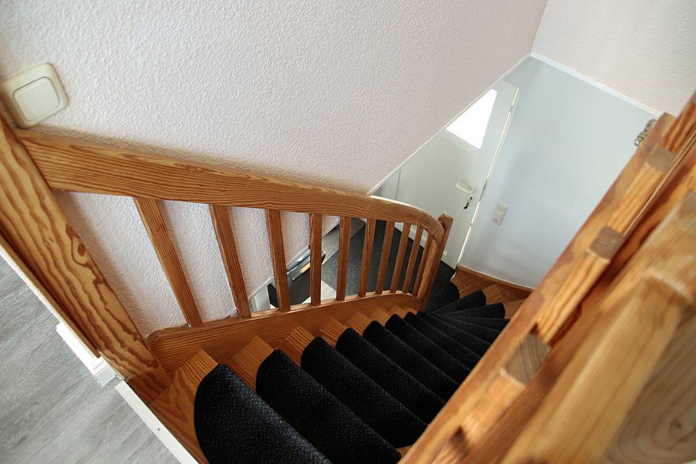 zwei Etagen präsentiert sich mit hellem Holz, freundlichen Farben und einem tollen Blick ins Grüne.