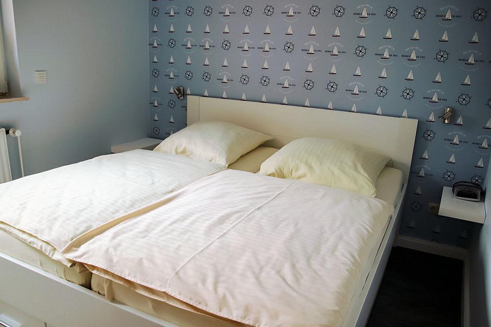 Im Erdgeschoss liegen die zwei Schlafzimmer: ein Zimmer mit Doppelbett, ein zweites