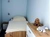 Zimmer mit einem Einzelbett. Im Bad finden Sie eine moderne Dusche und WC.