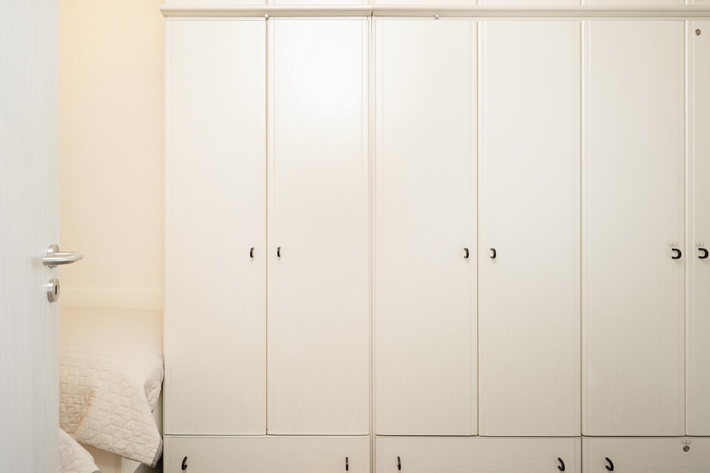 Schlafzimmer: 2 Einzelbetten (je 80x200 cm), Kleiderschrank, Verdunkelung: Vorhang, kein Platz für ein Babybett vorhanden