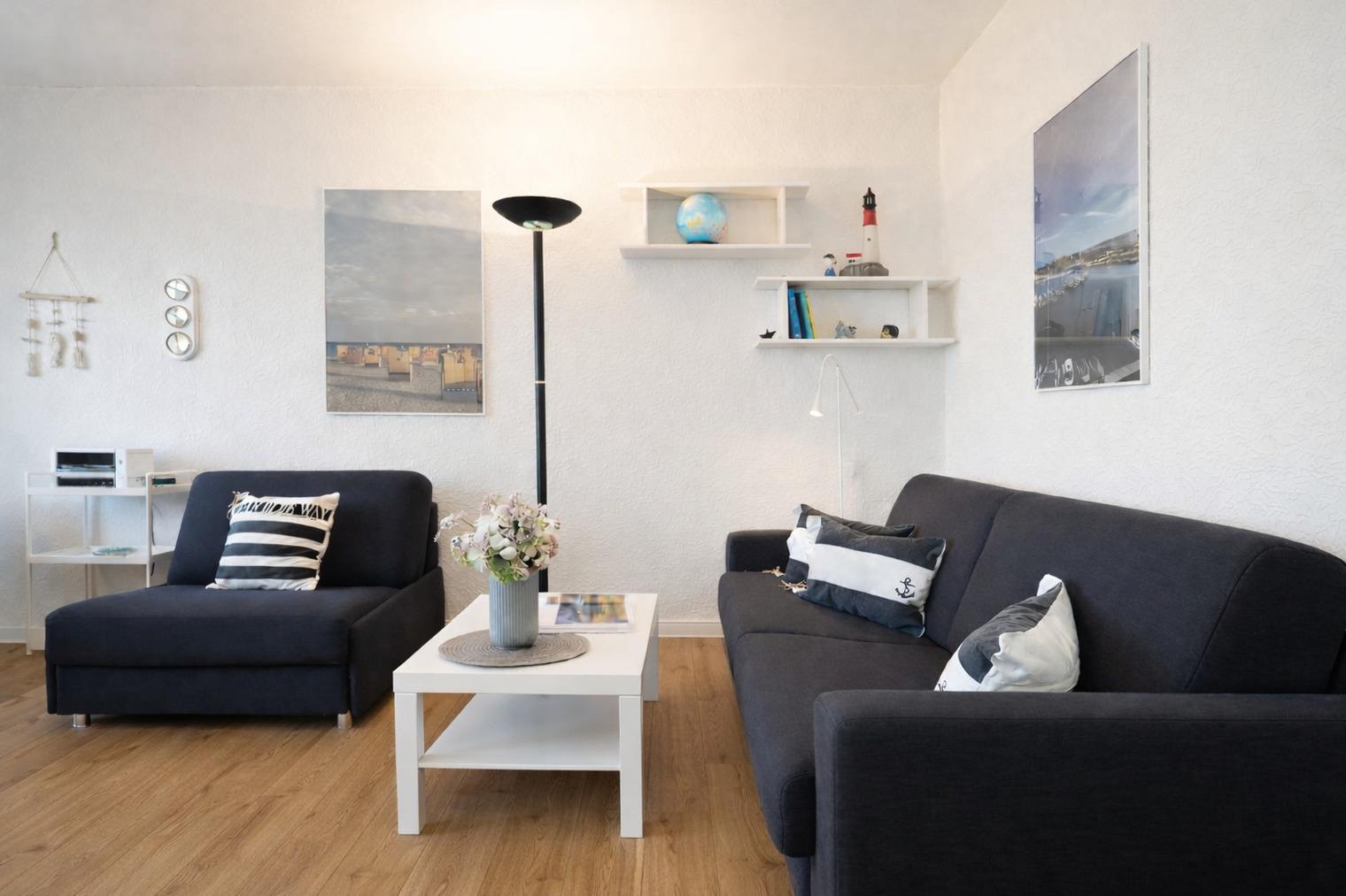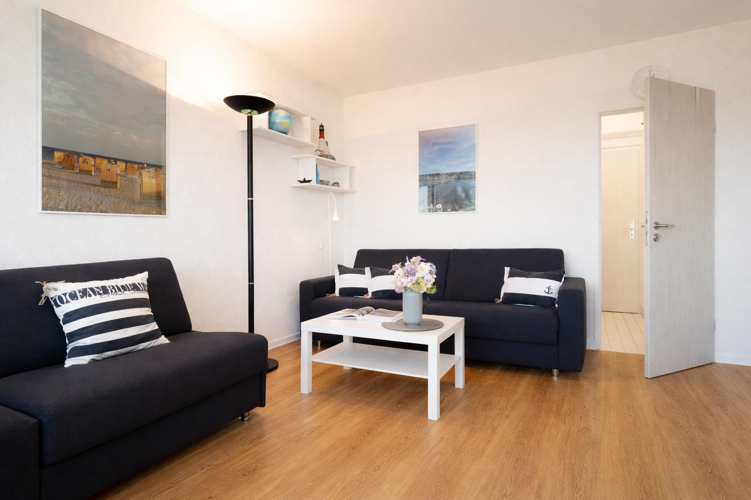 Großzügige 2-Zimmer-Ferienwohnung auf Fehmarn am Südstrand mit 35 m² Wohnfläche und Meerblick für bis zu 2 Personen.