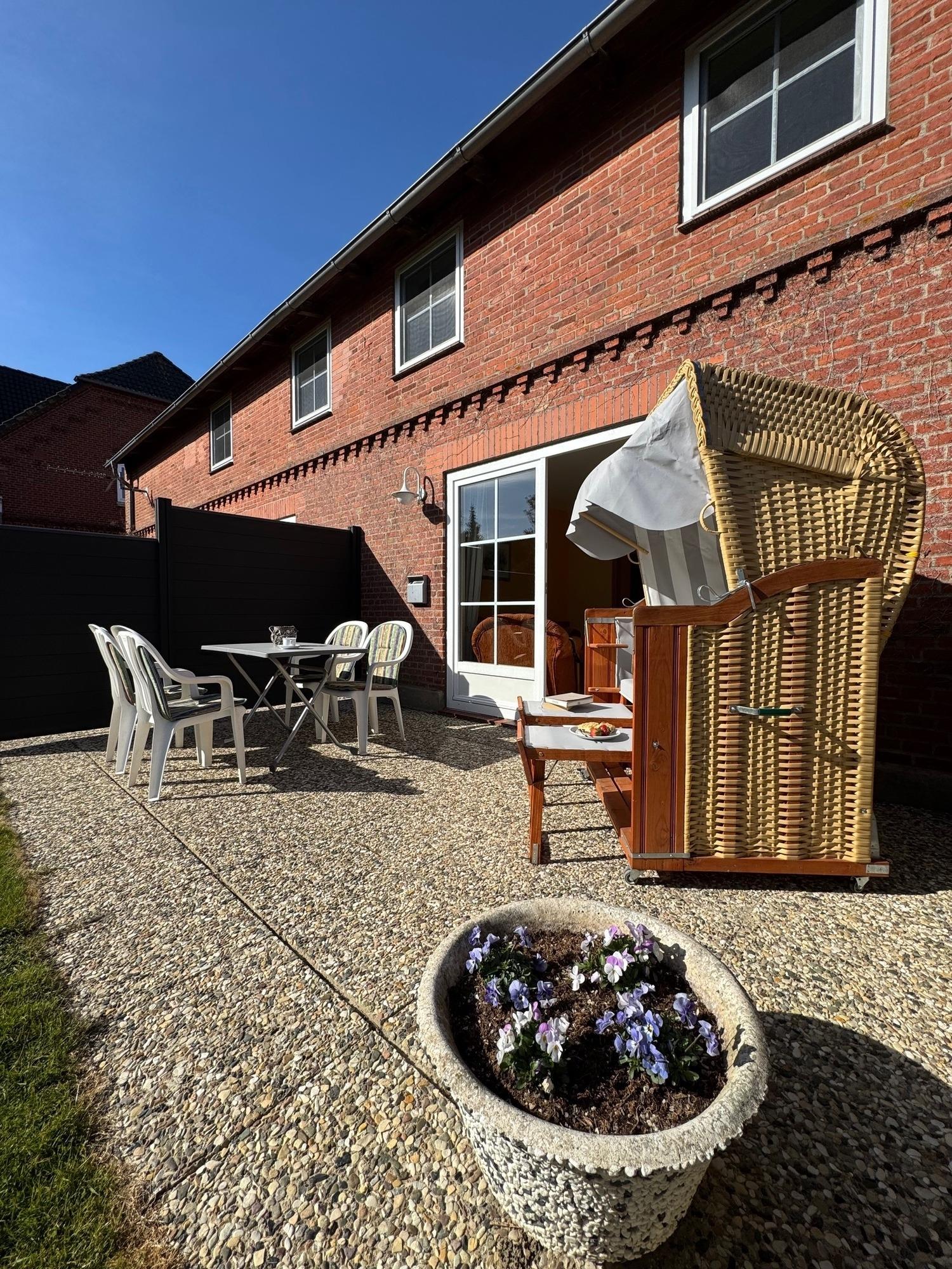 Direkt vom Wohnraum geht’s auf die sonnige Südterrasse mit Strandkorb, Gartenmöbeln und jeder Menge Platz zum Durchatmen. Für kleine Abenteurer und große Entdecker gibt es eine Spielscheune, ein riesiges Trampolin, einen Bolzplatz und viele weitere Spielgeräte auf dem Hof – Spaß garantiert!