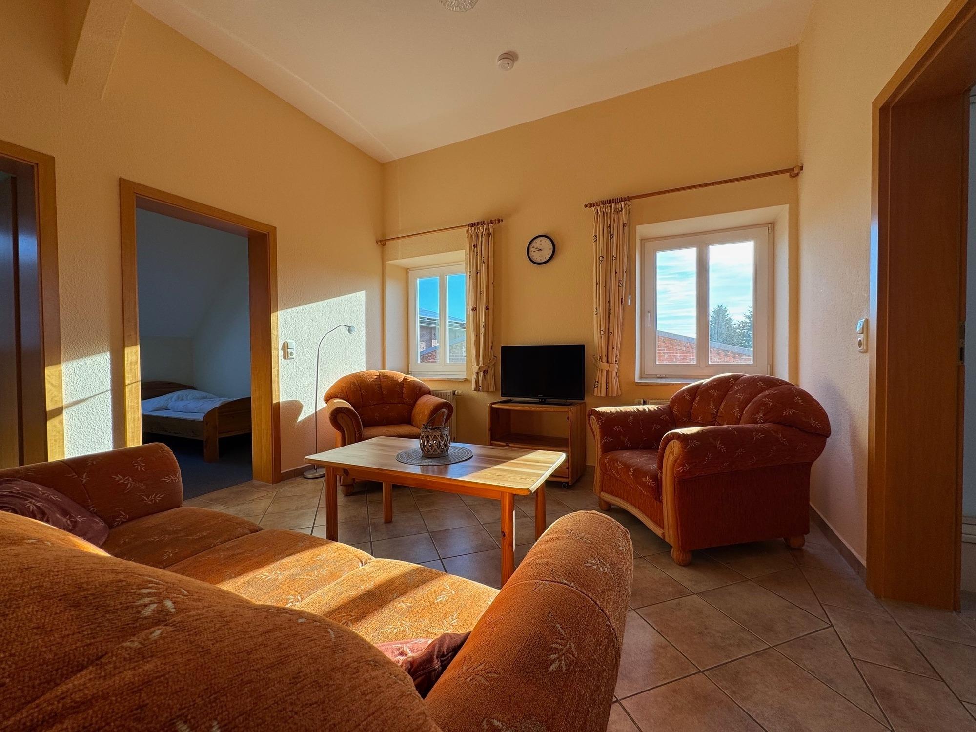 Ob mit der ganzen Familie oder mit Freunden – in dieser liebevoll eingerichteten Dachgeschosswohnung im Bauernhuus des Ferienhofs Middeldor findest du genug Raum für gemeinsame Auszeiten und echtes Inselfeeling.