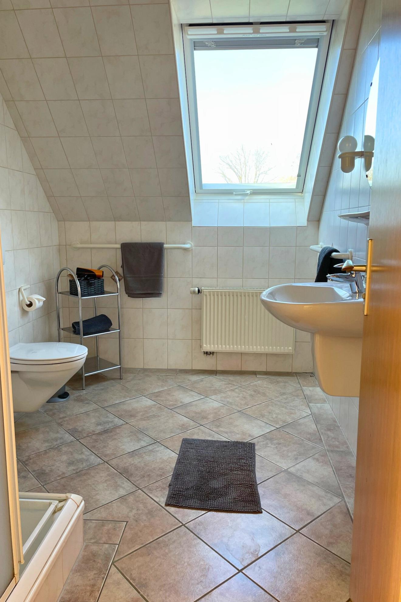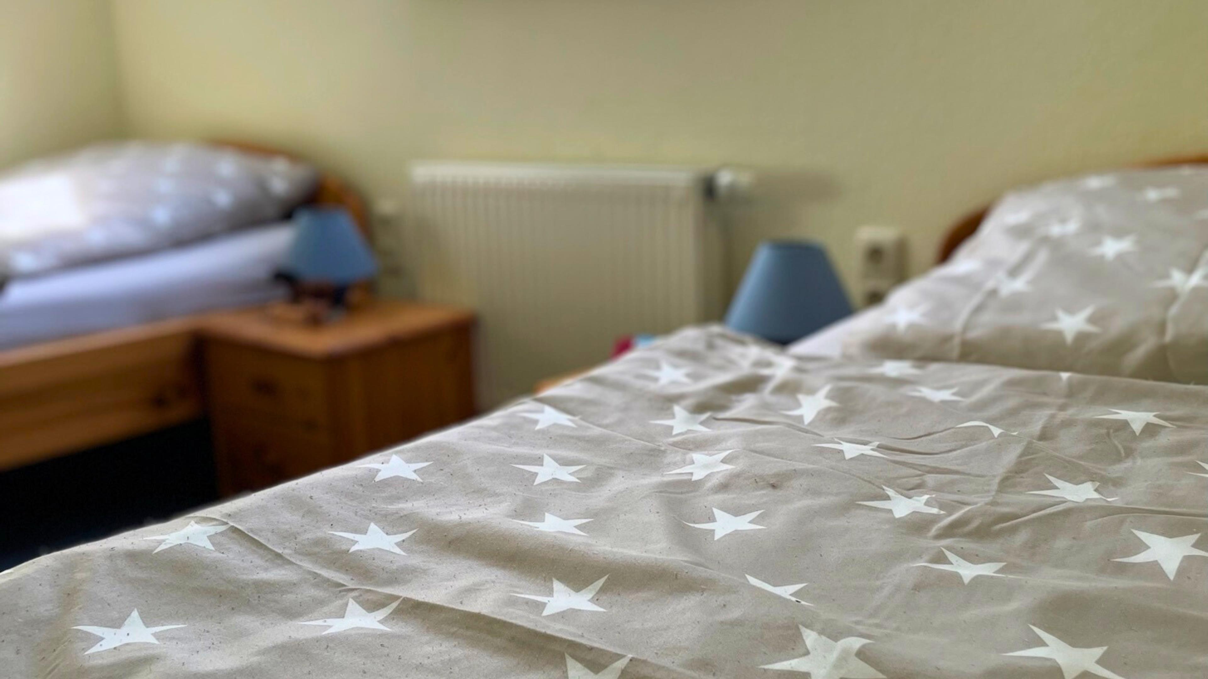 Es gibt drei Schlafzimmer: Ein großes Schlafzimmer mit Doppelbett, sowie zwei weitere Zimmer mit je zwei Einzelbetten. Duschbad ist funktional und sorgt dafür, dass du nach einem langen Tag perfekt entspannen kannst.