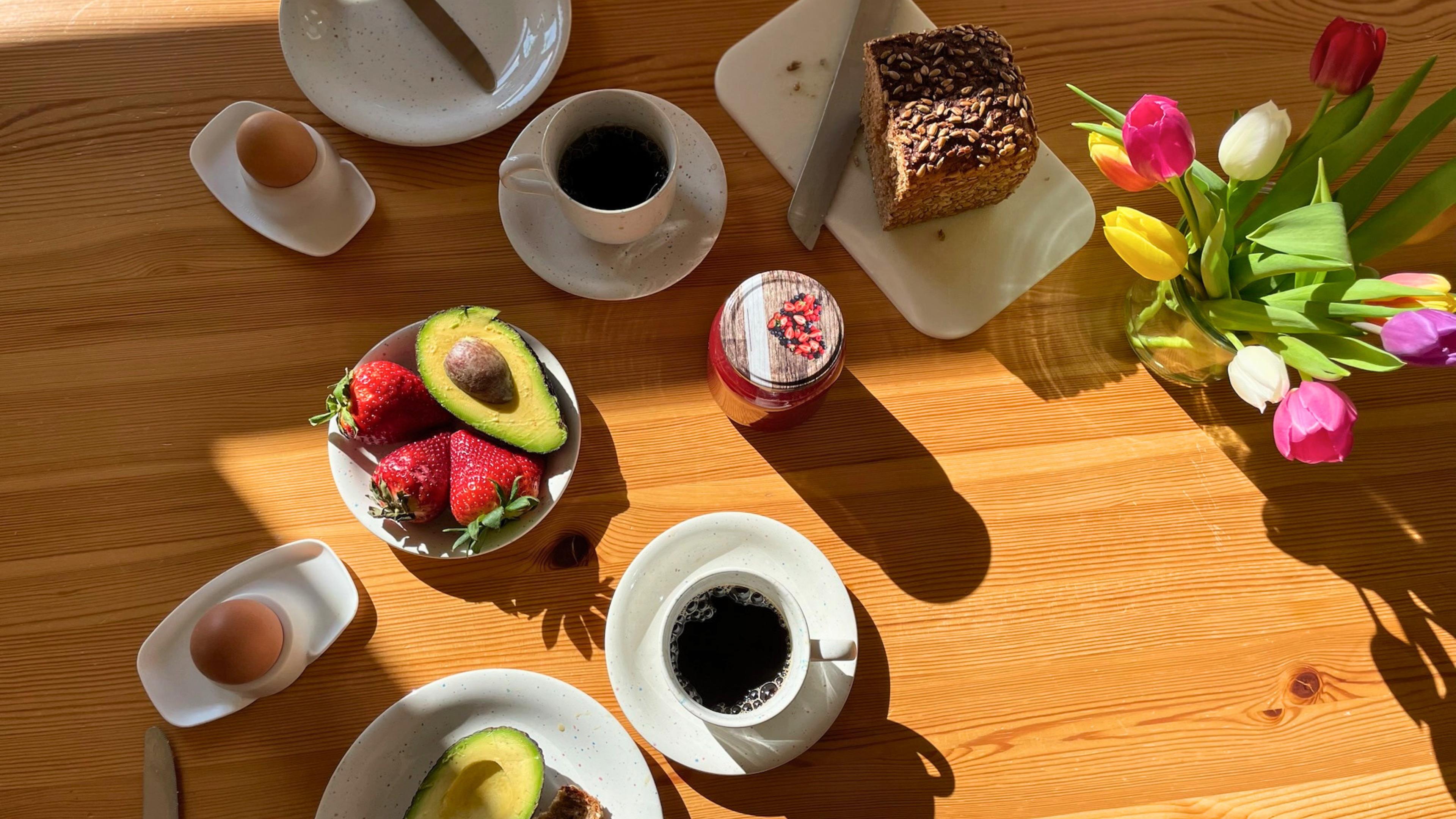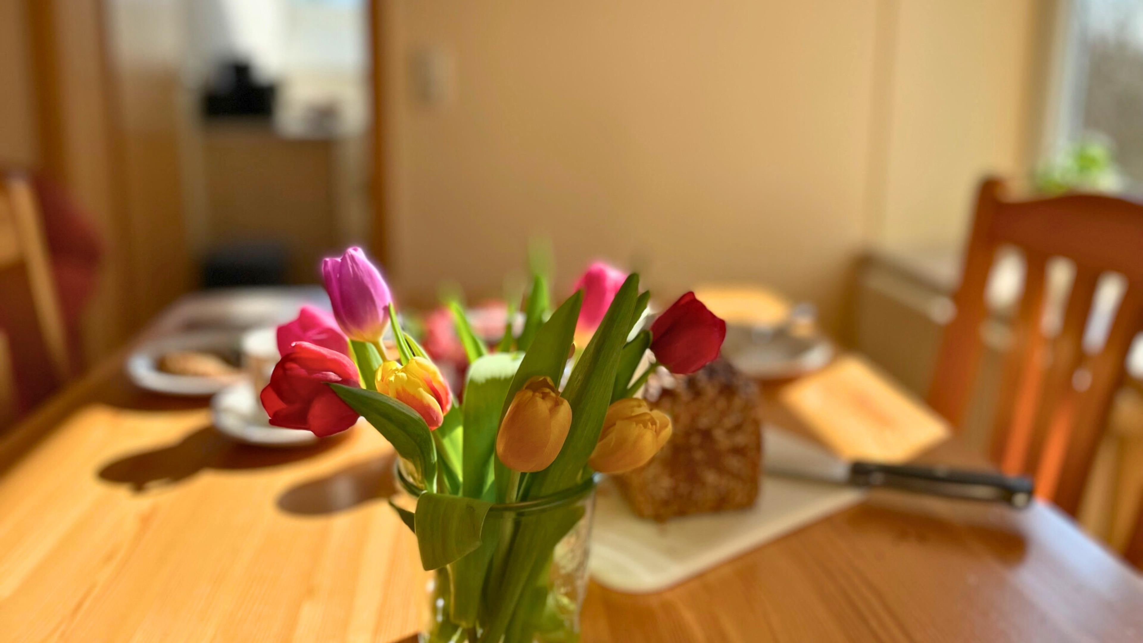 Der Wohn- und Essbereich ist offen und gemütlich miteinander verbunden – der perfekte Ort für gemeinsame Stunden. Ob entspannt auf der Couch oder beim gemeinsamen Essen am Tisch, hier lässt es sich gut leben. Die Küche ist voll ausgestattet, sodass du alle Mahlzeiten ganz nach Lust und Laune zubereiten kannst.