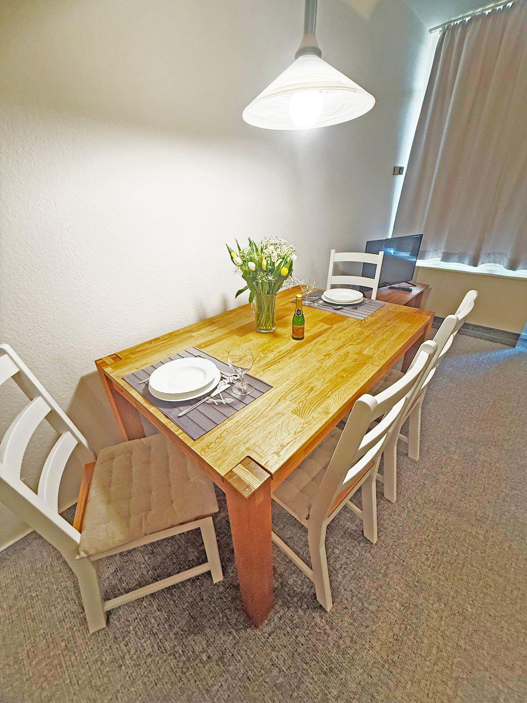 Großer Wohn-/ Essbereich modernes Schlafsofa und Essgarnitur