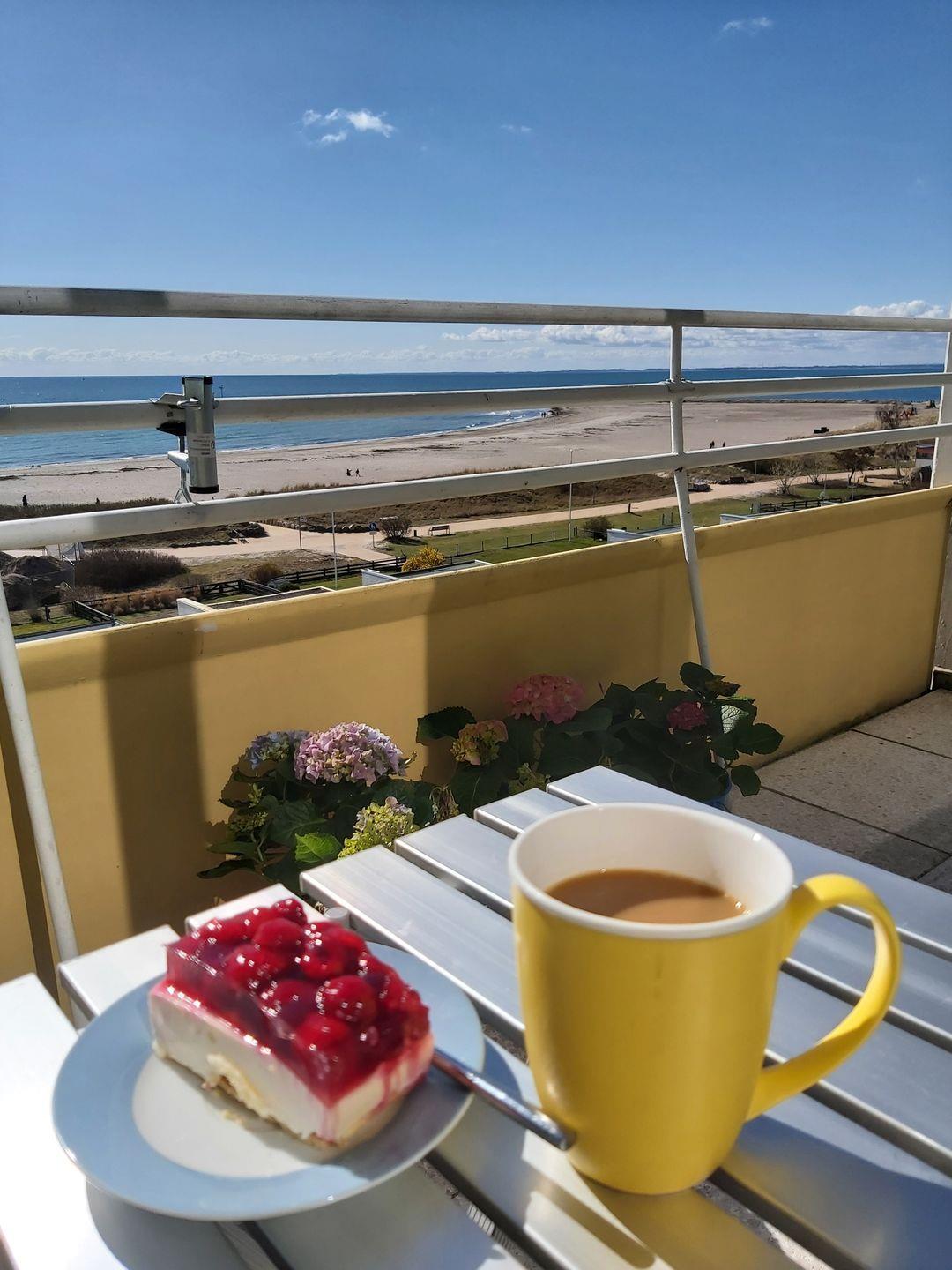 Strandnahe, helle 49 m² große Ferienwohnung für 4 Personen mit Balkon und Meerblick am Südstrand in Burgtiefe auf Fehmarn