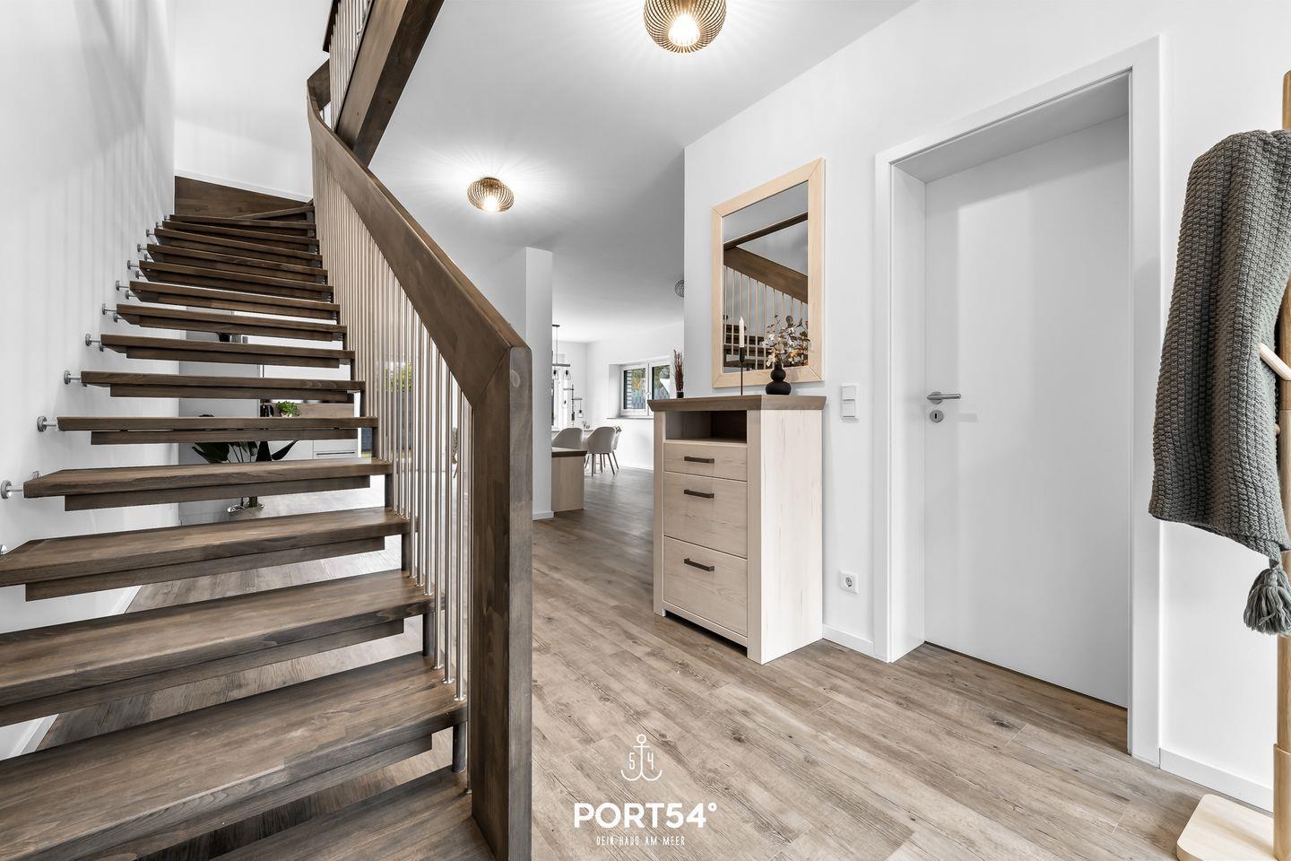 Fühlen Sie sich wie Zuhause - im Ferienhaus "Sonnenstein" Auf zwei Etagen und 130 m² Wohnfläche bietet das Haus neben drei Schlafzimmern, zwei Badezimmern, einem geräumigen Wohn- und Essbereich mit angrenzender, offener Küche auch eine vollmöblierte Sonnenterrasse mit Strandkorb und Schaukel.. Im Erdgeschoss befindet sich der Koch- Essbereich sowie das lichtdurchflutete Herz des Hauses - der Wohnbereich mit Zugang zur Terrasse. Im Obergeschoss erwarten Sie drei Schlafzimmer, sowie das luxuriöse Badezimmer mit finnischer Sauna. Alle Schlafzimmer verfügen über Verdunkelungsmöglichkeiten. Eines der Schlafzimmer verfügt über ein großes Doppel-Boxspringbett für zwei Personen. Im zweiten Schlafzimmer befindet sich ein Etagenbett mit einer Liegefläche von 90x200 cm oben und unten. Im dritten Schlafzimmer finden Sie zwei Einzelbetten mit den Maßen 90x200 cm.