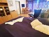 Doppelbett (160x200) mit LED-Leselampen, Flat Screen-TV, Schlafsofa, Esstisch Kleiderschrank, Sideboard, Spiele, Bücher