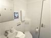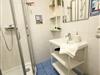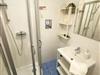 Dusche, Waschbecken, Spiegel, gute Beleuchtung, WC, Regal, Handtuchaufhänger, Fön