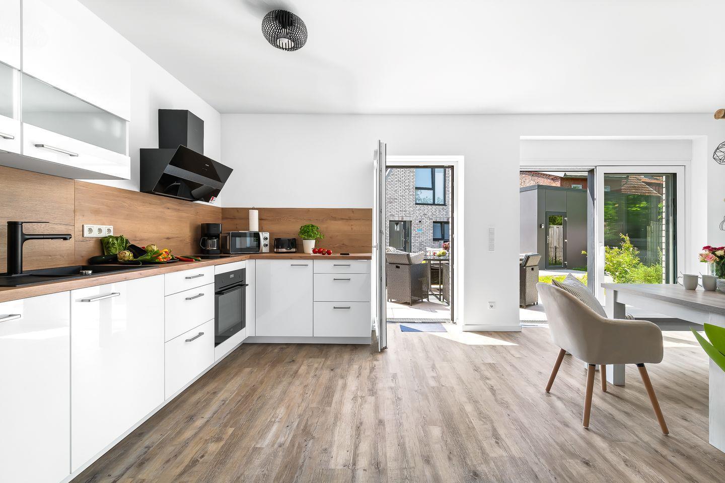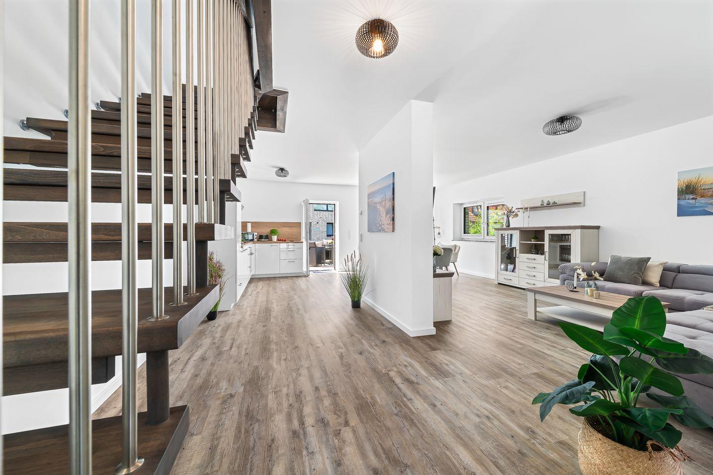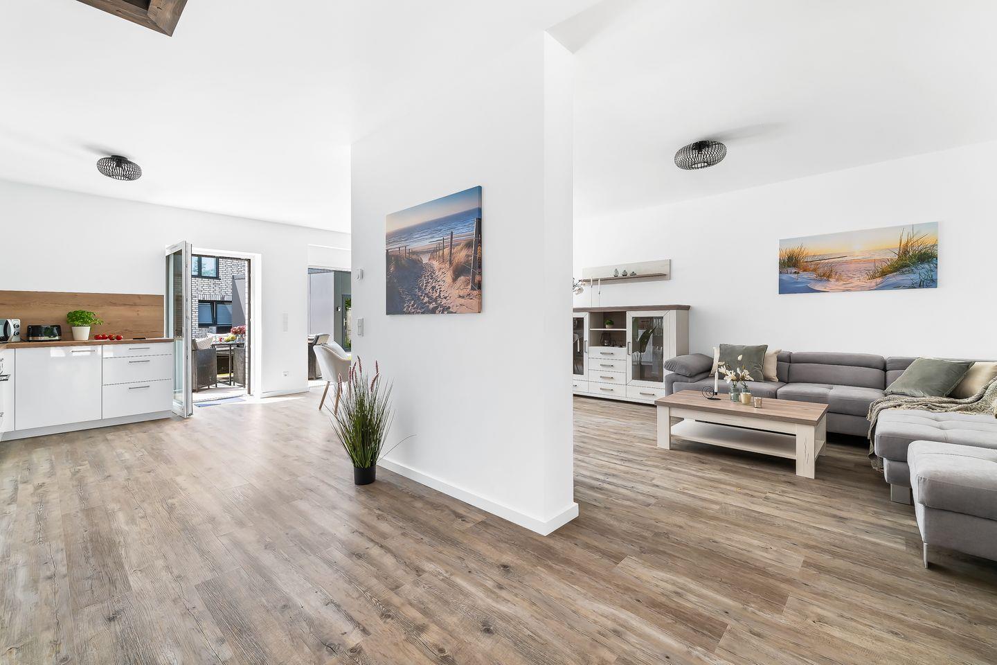 Fühlen Sie sich wie Zuhause - im Ferienhaus "Treibholz"! Auf zwei Etagen und über 130 m² Wohnfläche bietet das Haus neben drei Schlafzimmern, zwei Badezimmern, einem geräumigen Wohn- und Essbereich mit angrenzender, offener Küche auch eine vollmöblierte Sonnenterrasse.