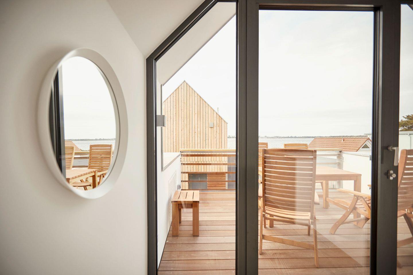 Die 65 Quadratmeter große Villa Azure II bietet mit ihrer offenen Architektur bis zu 4 Urlaubern. Aus der hellen Wohnküche, den beiden Terrassen und dem gemütlichen Boxspringbett im 1 Stock, kann man dem lebendigem Meeresrauschen entspannt zusehen. Bei Wind und Wetter lädt der knisternde Kaminofen und die gemütliche Fußbodenheizung zum Wohlfühlen ein, Meeresrauschen 24 Stunden am Tag inklusive.