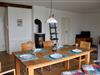 Der moderne, große Esstisch lädt zum gemütlichen Beisammensein ein.