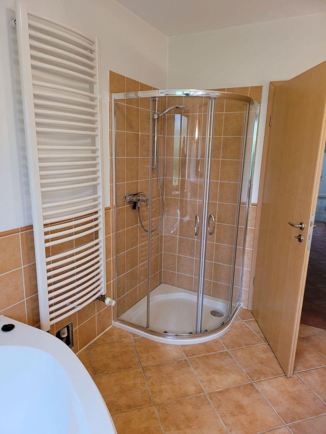 Vollbad mit Dusche und WC im Erdgeschoß.