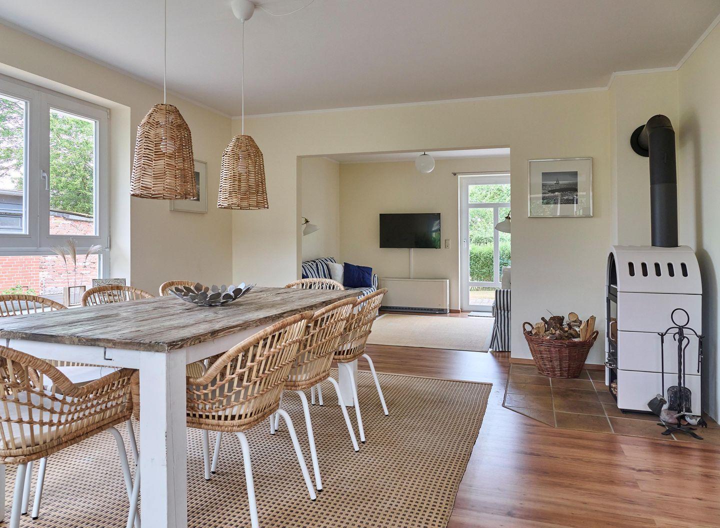 Unser modern maritimes Ferienhaus verfügt über kostenfreies Highspeed-Internet und Smart-TV. Drei behagliche Schlafzimmer mit komfortablen 1,8m Doppelbetten und eine Schlafcouch im Wohnzimmer bieten Platz für max. 8 Personen. In unserem eingezäunten 630 qm großen Garten können Kinder und Eure Vierbeiner unbesorgt toben und spielen. Die Küche ist ausgestattet mit Kühlschrank plus Gefrierfach, Cerankochfeld, Mikrowelle, Geschirrspüler, Waschmaschine mit Trockner, Wasserkocher, Nespresso- und Kaffeemaschine. Der großzügige, luftige Wohn-Essbereich mit Kamin lädt zu gemütlichen Kochabenden und ausgedehnten Spieleabenden ein. Zwei Badezimmer mit Walk-In-Duschen sowie zwei sonnige Terrassen mit Strandkorb und Grill runden das Angebot ab.