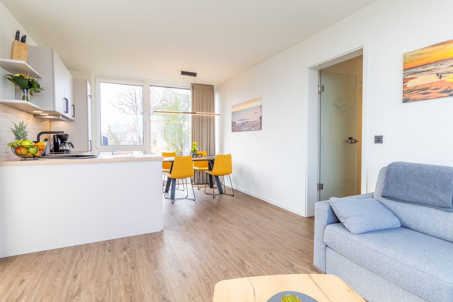 Auch mit Baby oder Kleinkind ist diese Wohnung bestens geeignet: Sie bietet ausreichend Platz, ist hell und übersichtlich geschnitten und punktet mit kurzen Wegen zum Strand. Ideal für entspannte Tage mit der ganzen Familie.