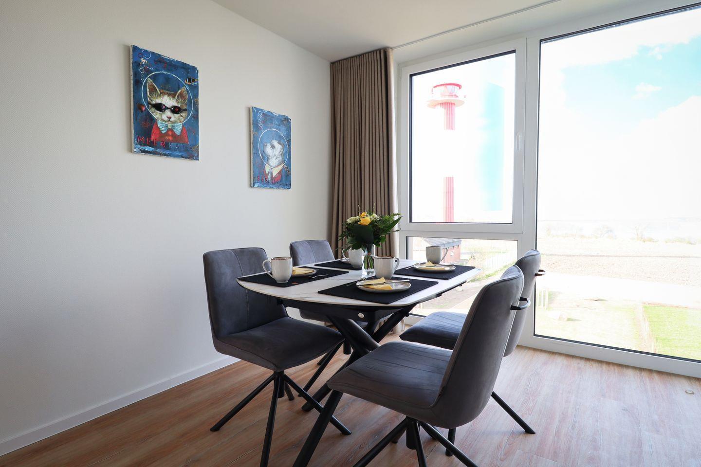 Der offene Wohnbereich verbindet sonnige Farben mit modernen Materialien. Große Fenster schaffen Helligkeit und Weite, die stilvolle Einrichtung lädt zum Abschalten ein. Die voll ausgestattete Küche mit Geschirrspüler, Ceran-Kochfeld, Backofen und Kaffeemaschine macht das Kochen zum entspannten Urlaubserlebnis. Highlight ist die große Dachterrasse mit Meerblick – dein Platz für Frühstück an der frischen Luft oder gemütliche Abende unter freiem Himmel.