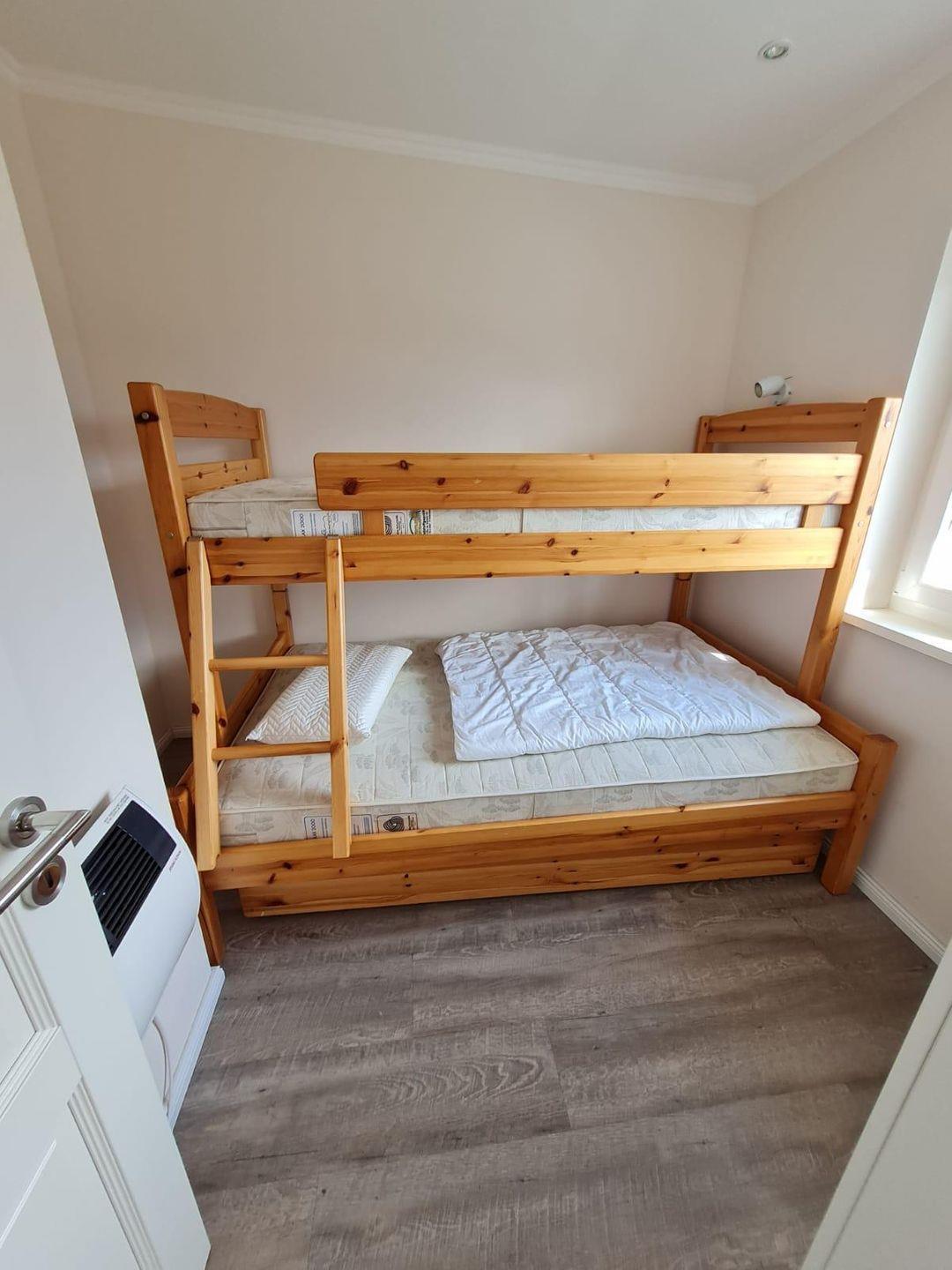 Das Haus am Meer verfügt über eine großzügige Wohnfläche. Die Küche ist mit allem Nötigen ausgestattet, was Sie zum Kochen und Genießen benötigen. 2 Schlafzimmer sind mit Doppelbetten und einem Kleiderschrank ausgestattet. Das Kinderzimmer verfügt über ein Etagenbett sowie Kleiderschrank.