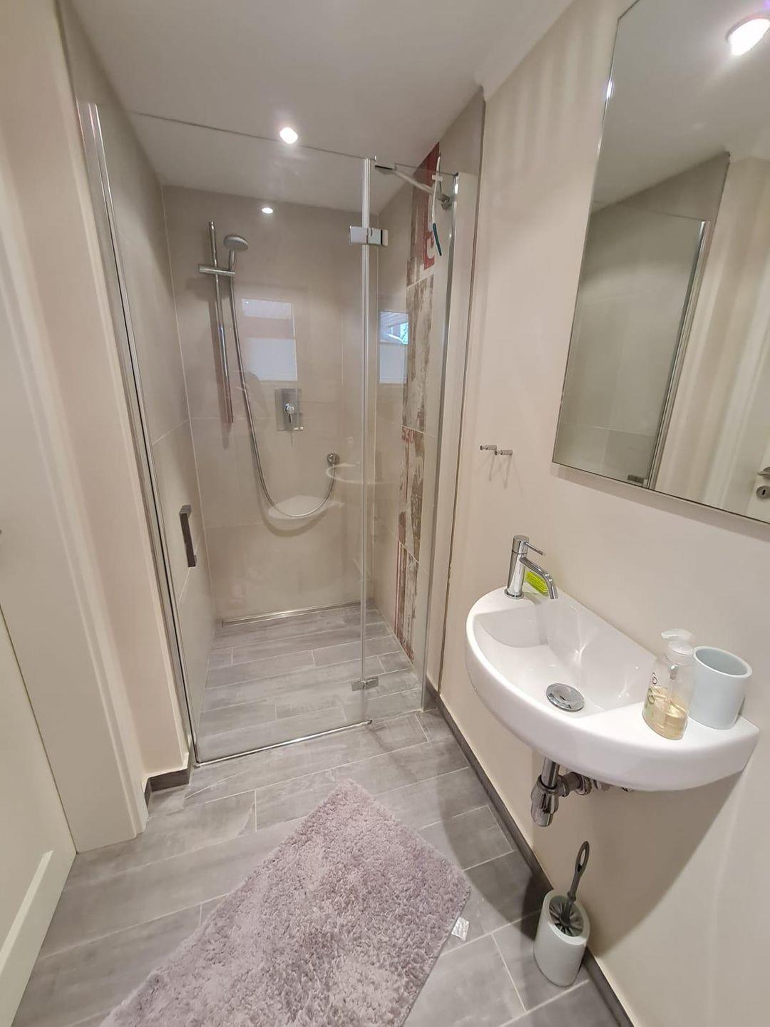 Im Erdgeschoß befindet sich ein Gästebad, Wohnbereich sowie ein Schlafzimmer.