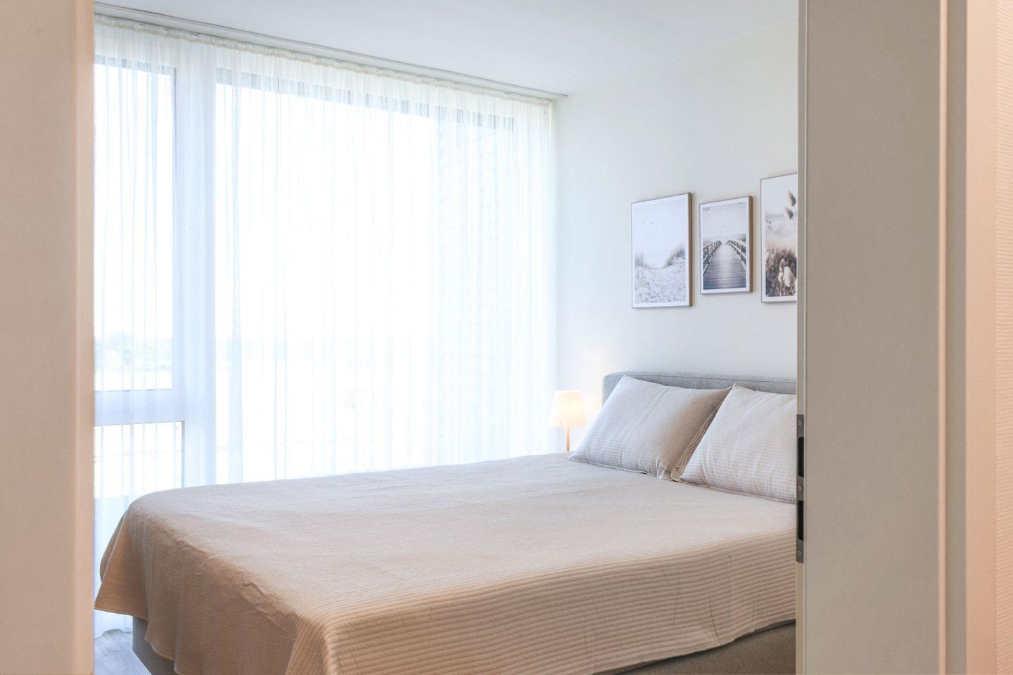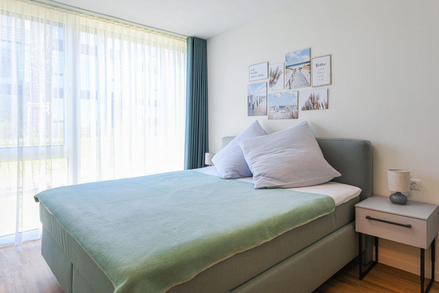 Zwei stilvolle Schlafzimmer mit bequemen Boxspringbetten und Verdunklungsvorhängen sorgen für erholsamen Schlaf. Im Hauptschlafzimmer steht dir zusätzlich ein Homeoffice-Arbeitsplatz zur Verfügung – ideal für alle, die Arbeit und Erholung verbinden möchten.