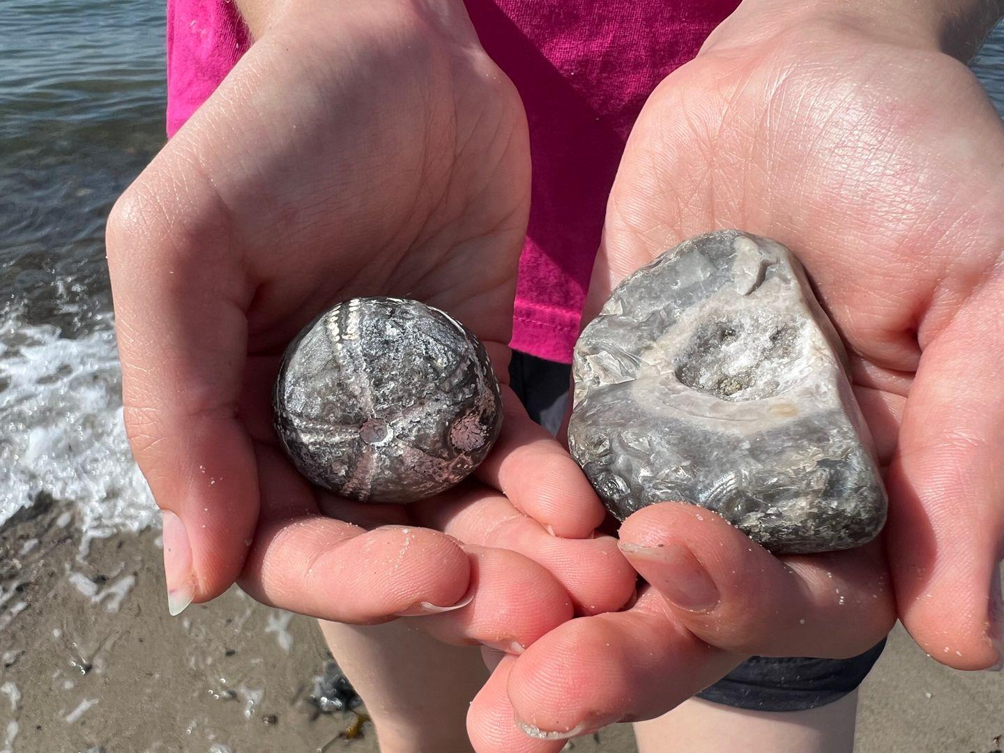 Ein kurzer Fußweg (ca. 10 min) durch das idyllische Dorf führt sie an den Naturstrand mit dem berühmten „Ostseestöpsel“. Hier können sie die namensgebenden versteinerten Seeigel finden und herrliche Sonnenuntergänge erleben.