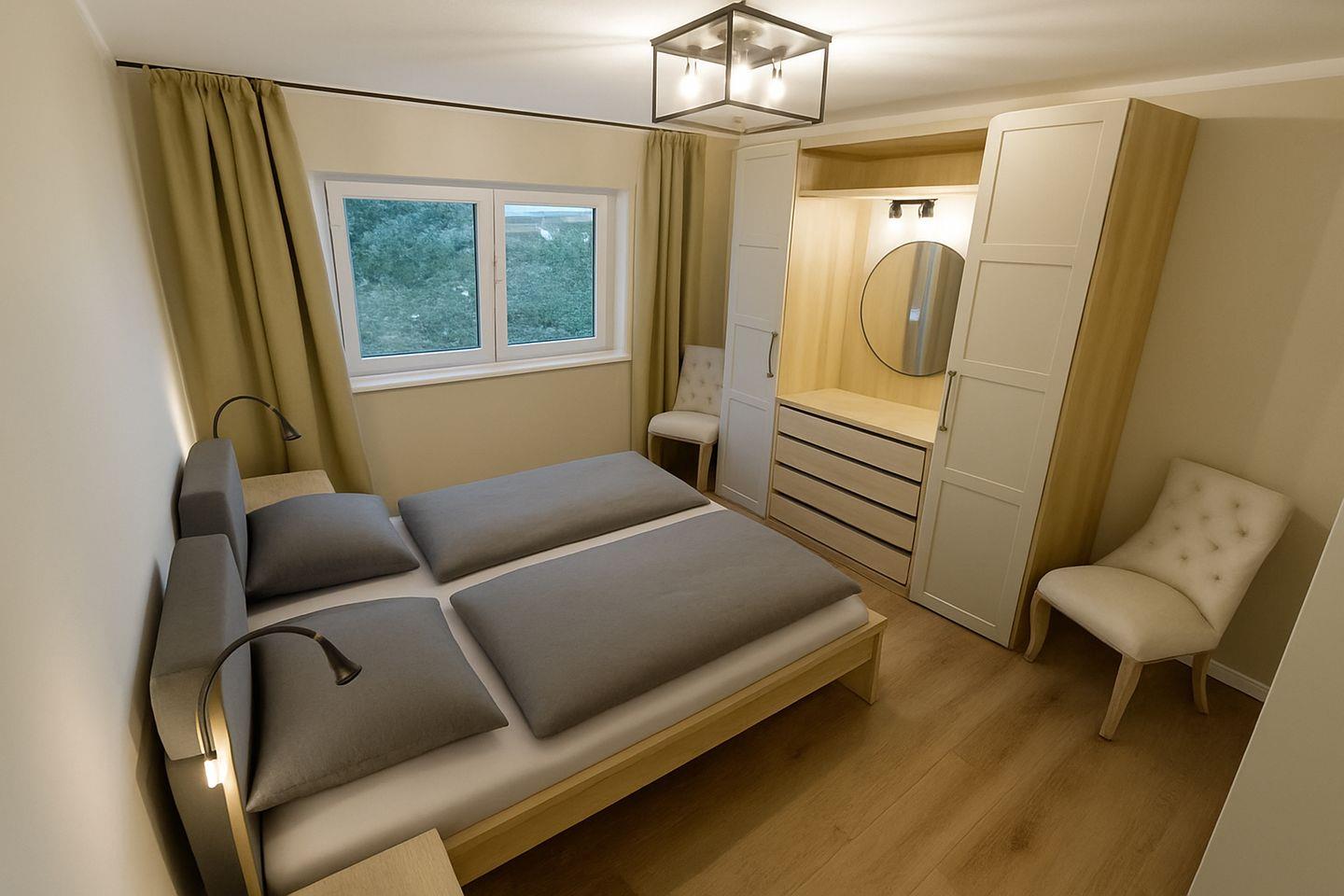 Sie erwartet eine exlusive Ferienwohnung mit 120 qm, 3 Schlafzimmern und einem Bad mit Dusche und Badewanne.