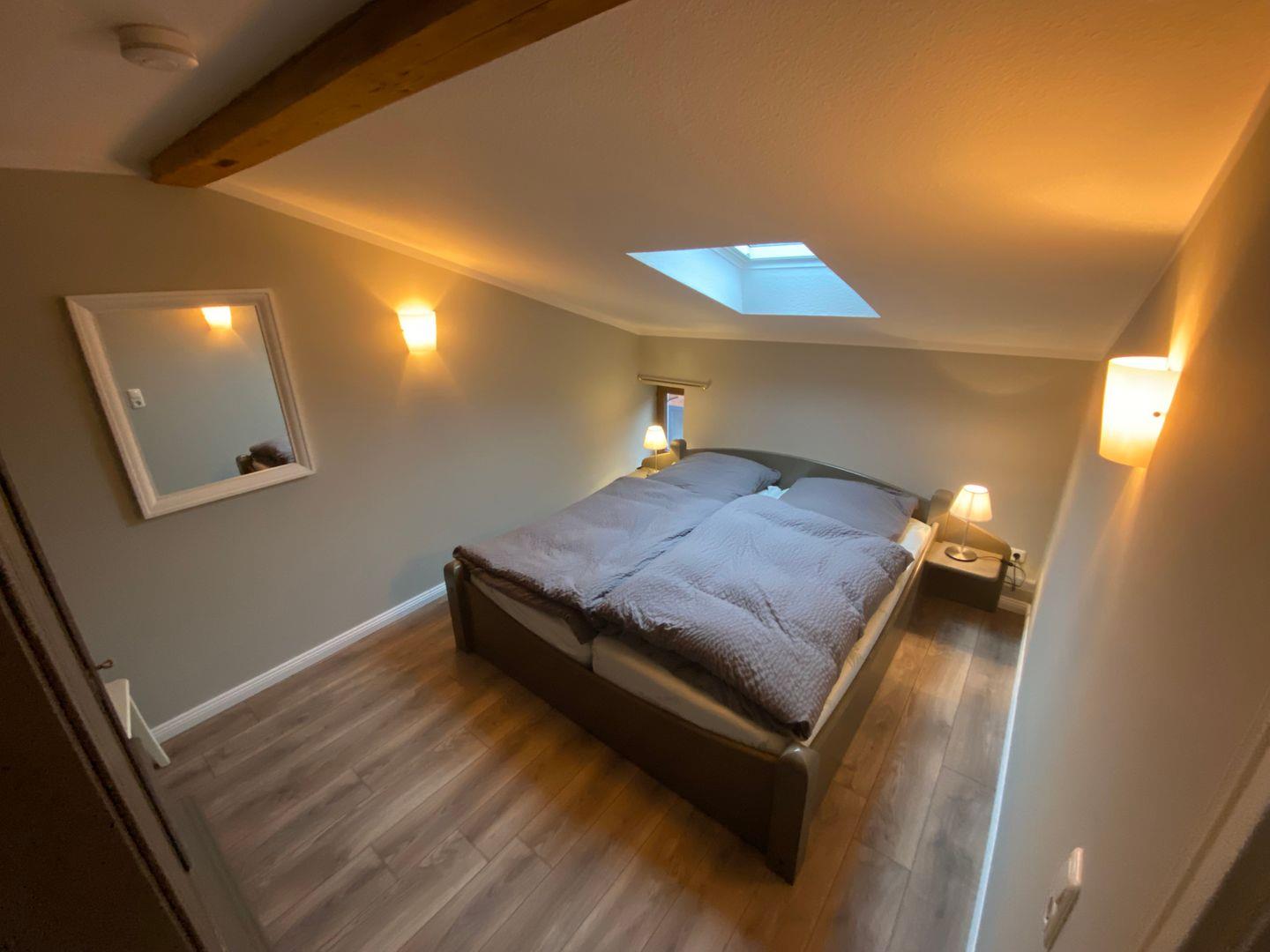 Sie erwartet eine liebevolle Ferienwohnung im 1. Stock, mit 80 qm, 2 Schlafzimmern und einem Bad.