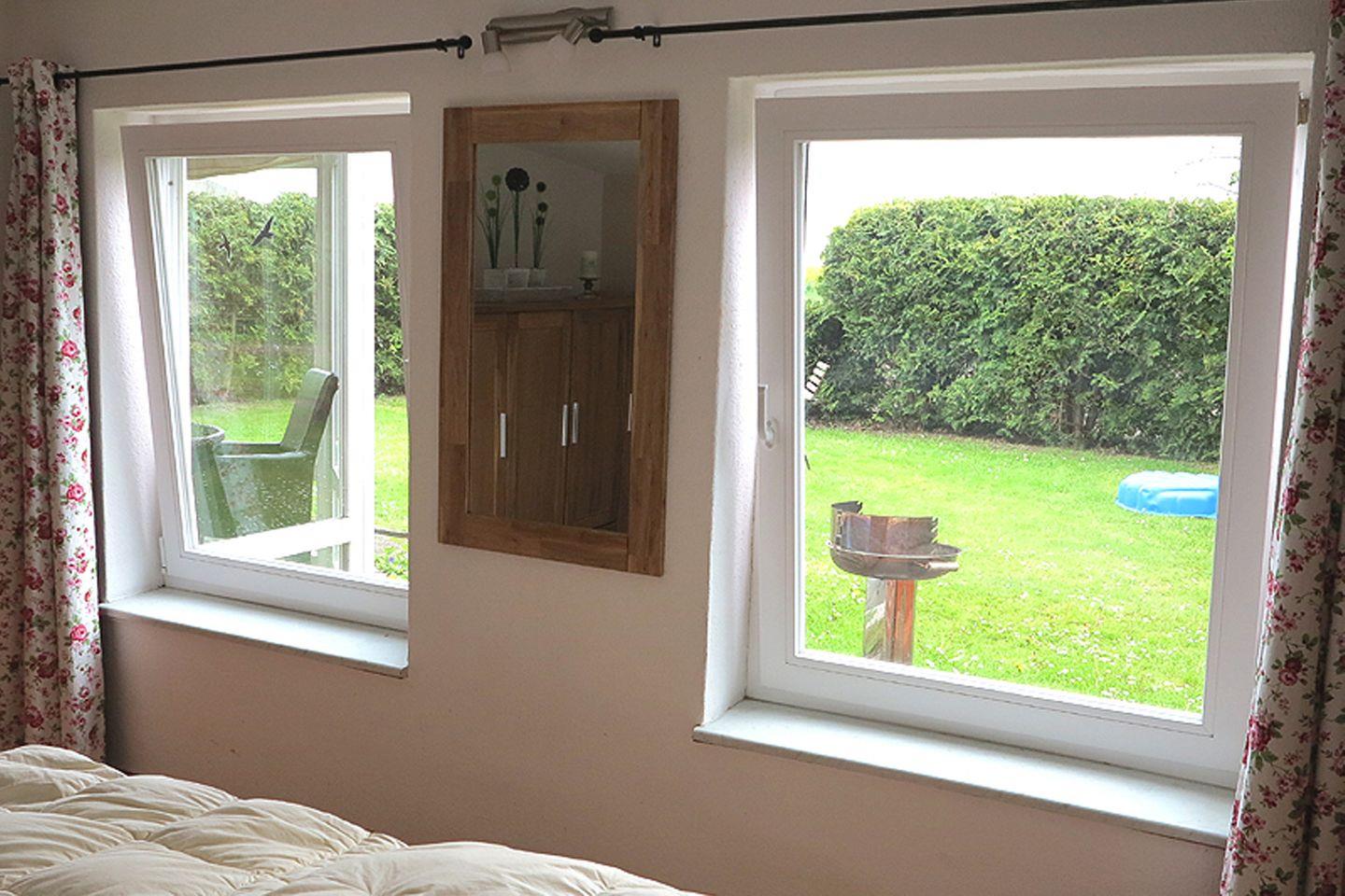 Im Außenbereich genießen Sie Gartenblick und einen guten Landschaftsblick. Eine Terrasse mit Gartenmöbeln sowie Garten, Liegewiese, Sonnenliegen und ein Strandkorb laden zum Entspannen ein. Für aktive Stunden stehen auf dem Gelände unter anderem eine Tischtennisplatte bereit; zudem gibt es Spielmöglichkeiten wie Schaukel, Spielplatz und Trampolin. Ein Privatparkplatz (1 Stellplatz) gehört zur Unterkunft.