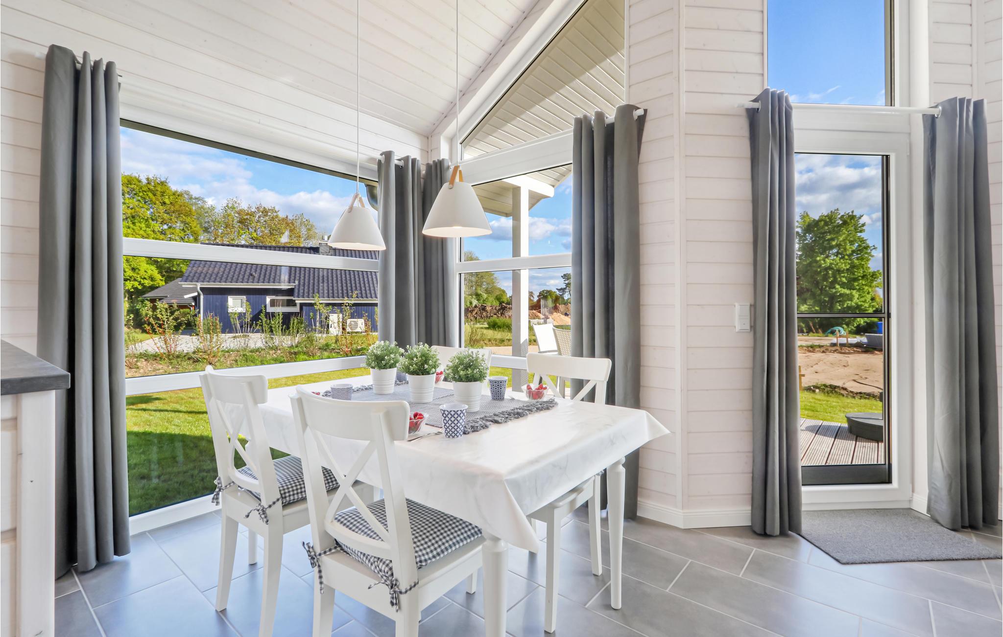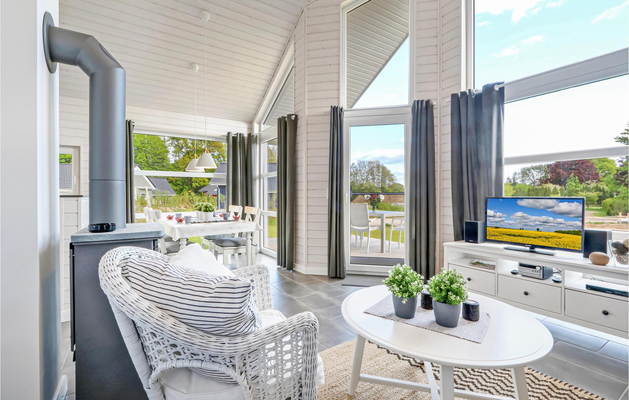 Dette moderne feriehus af træ Waldliebe giver god plads til fire voksne. Her er loft til kip og store vinduer, der giver en rummelig og lys atmosfære. Den maritime indretning i lyse farver bidrager også til den hyggelige stemning.