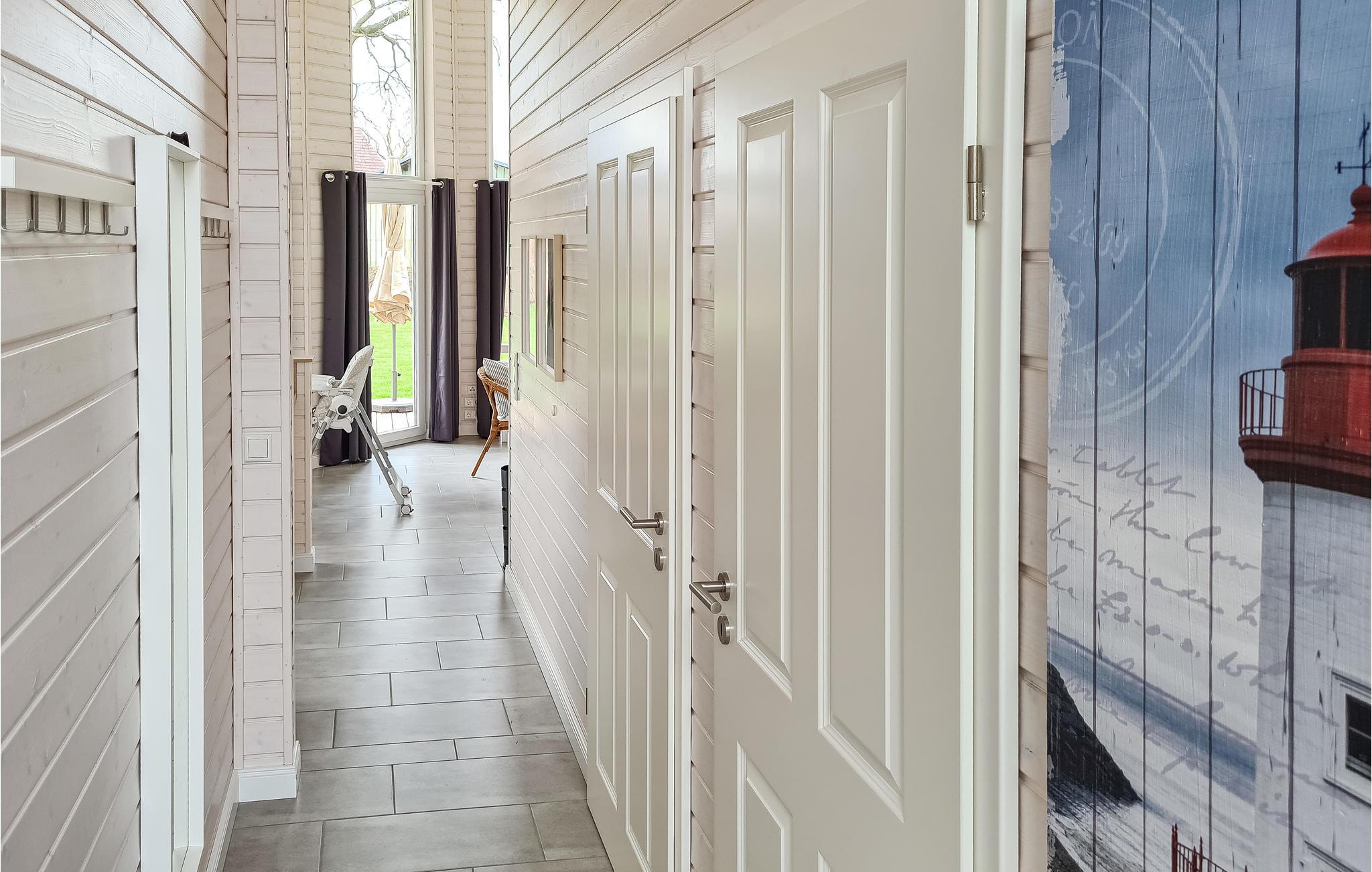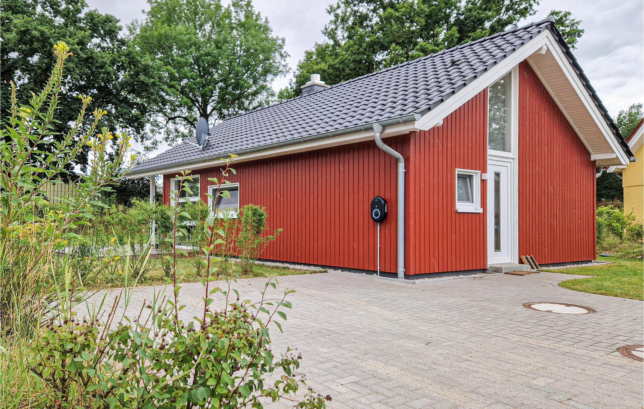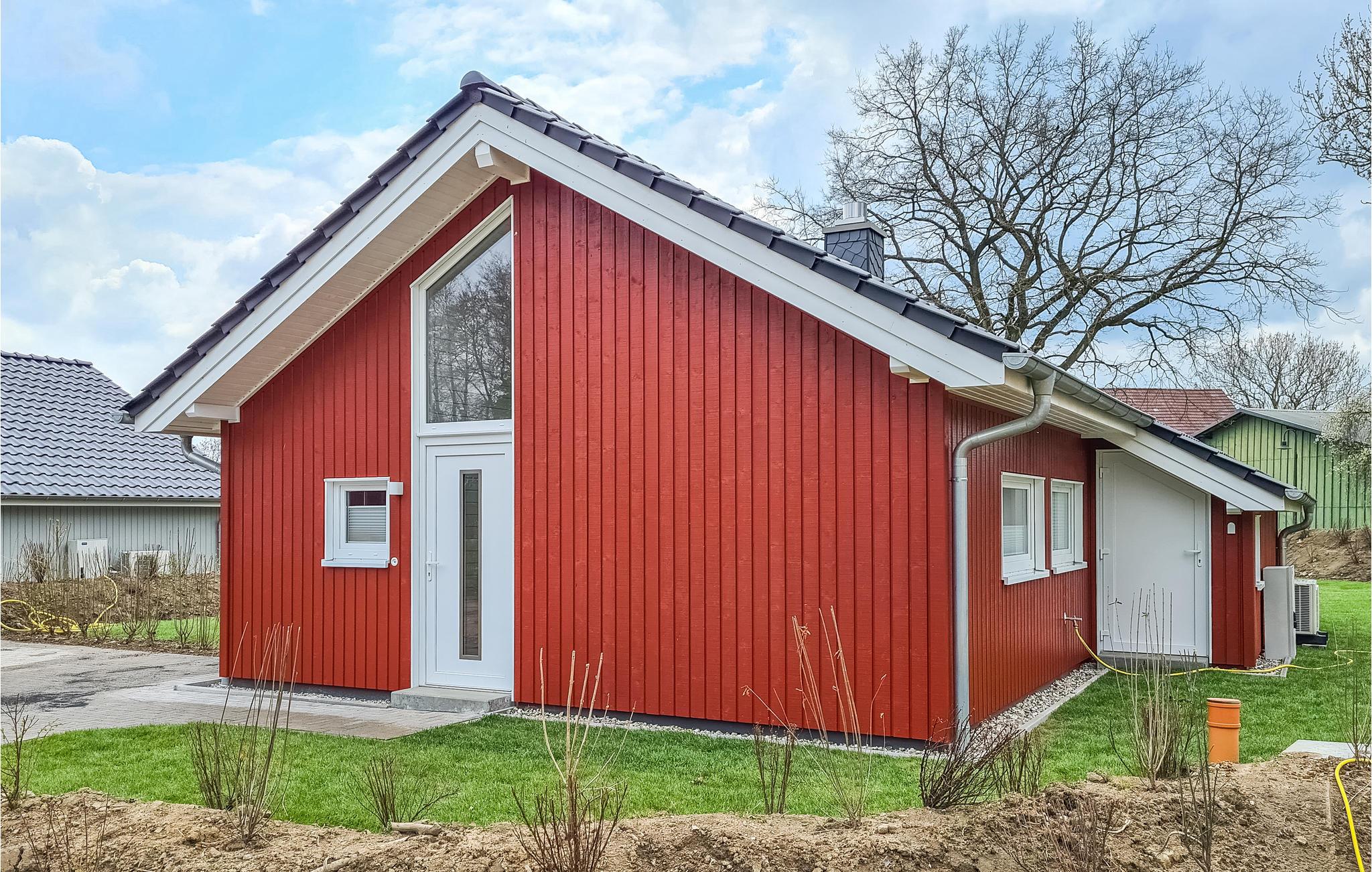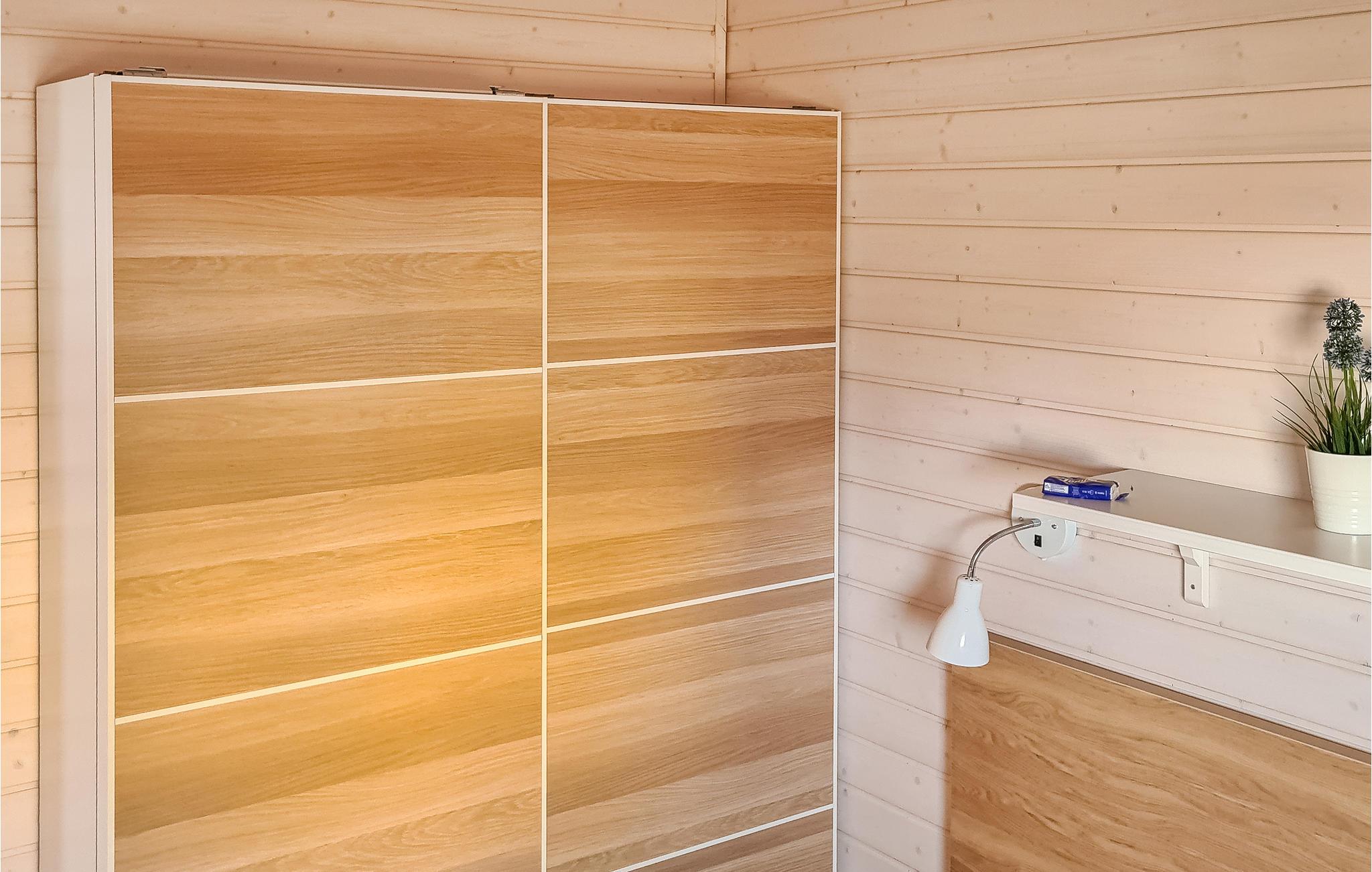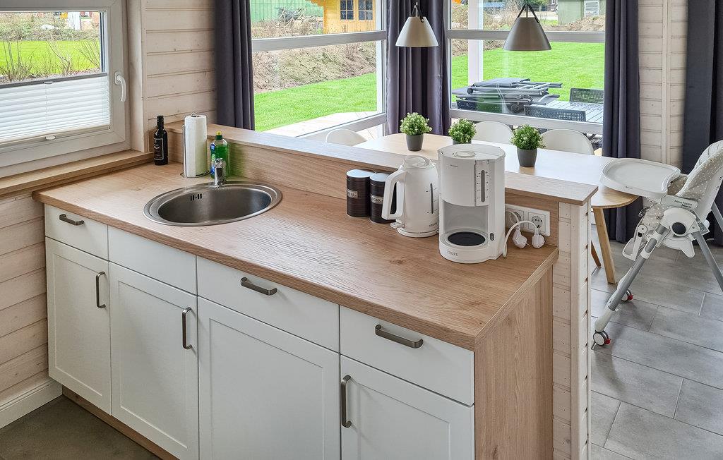 Det moderne træhus imponerer med sin skandinaviske stil og har plads nok til fire voksne og to børn. På grund af det høje åbne loft kan I nyde en behagelig fornemmelse af plads og lyse rum. Indretningen i lyse toner bidrager til den gode atmosfære.