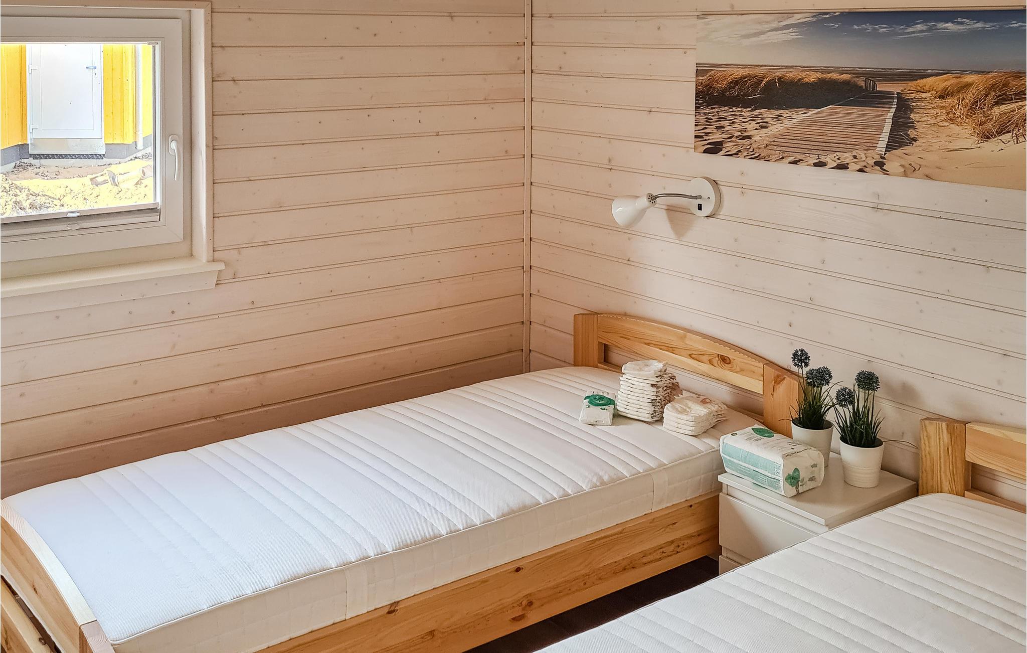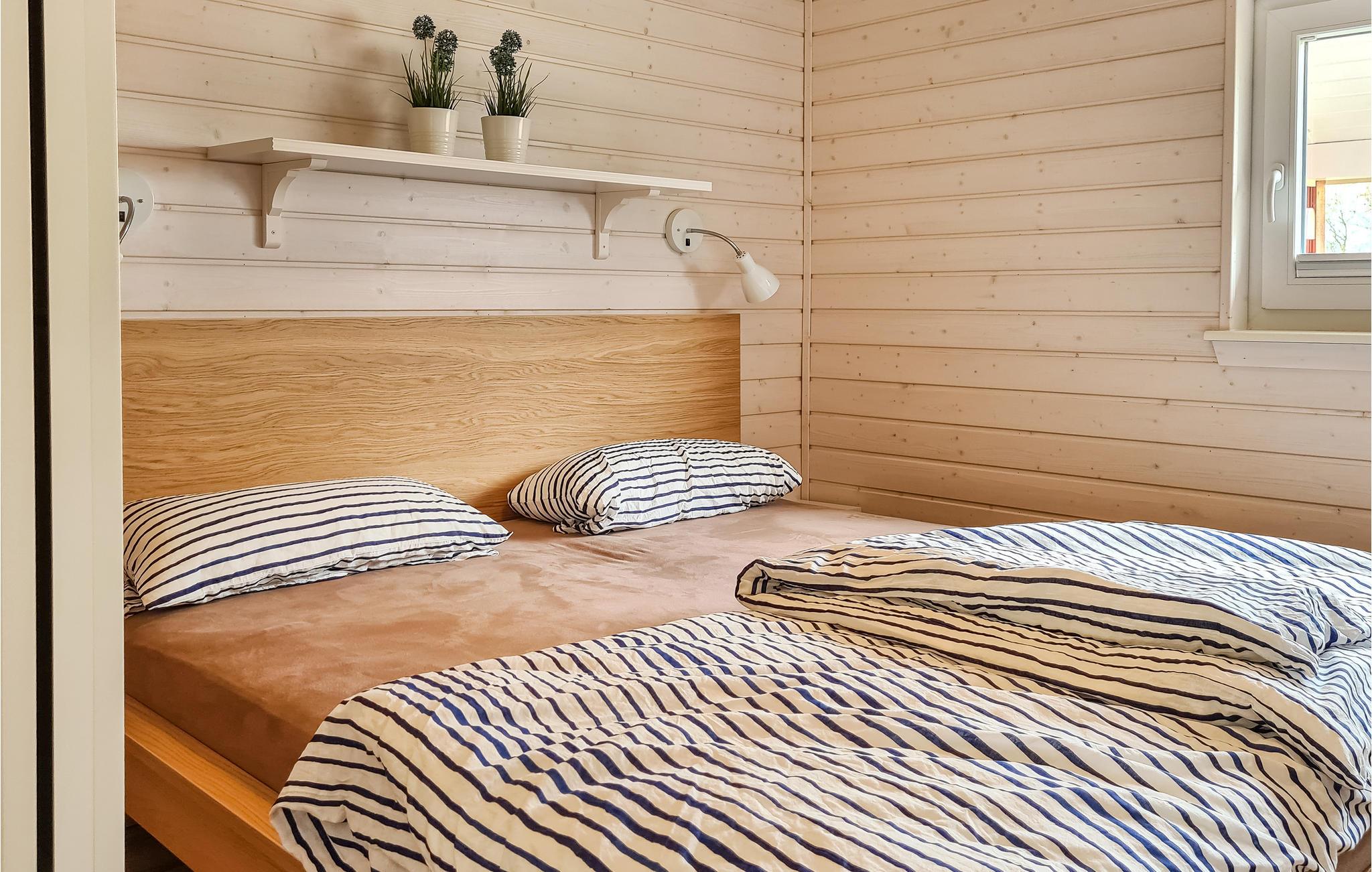 Det første soveværelse har en dobbeltseng, det andet soveværelse har to enkeltsenge. Børnene kan slå lejr og overnatte på sovesofaen i opholdsstuen. Køkkenet er i et separat rum uden dør og er veludstyret. Fryseren har plads nok til at opbevare den fangede fisk.
