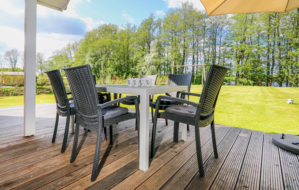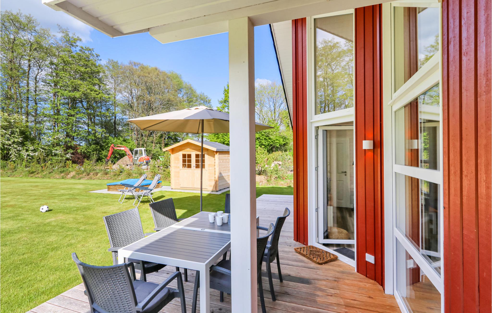 Det er dejligt at slappe af på terrassen, måske med morgenmad. I den kølige årstid sørger sauna og brændeovnen i stuen for både wellness, varme og hygge.
