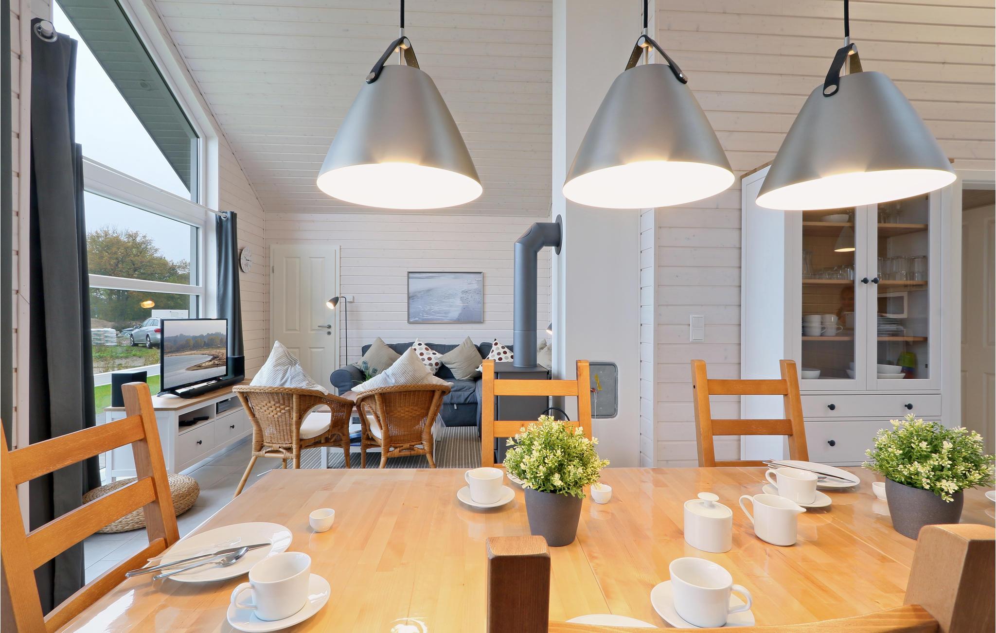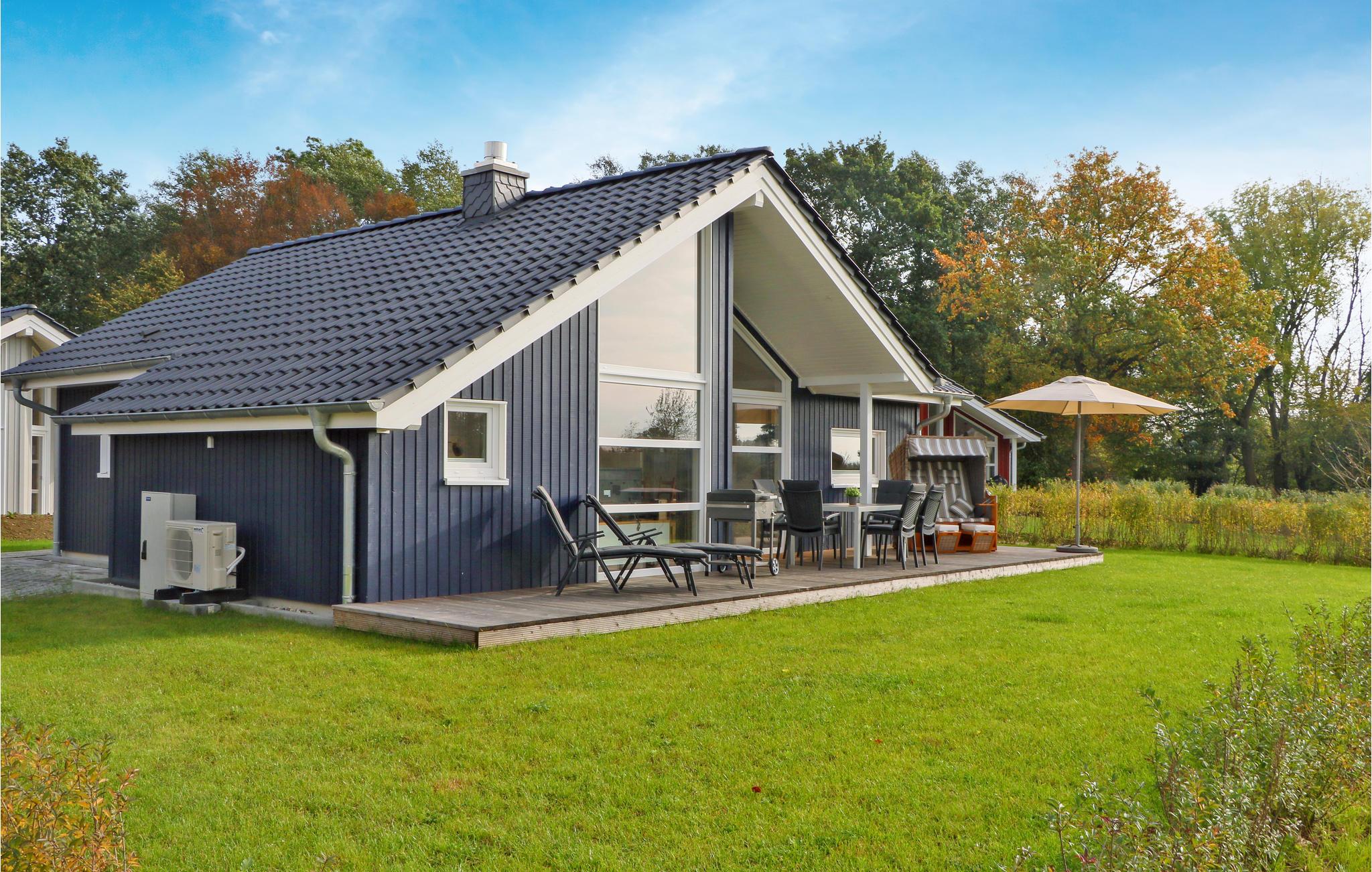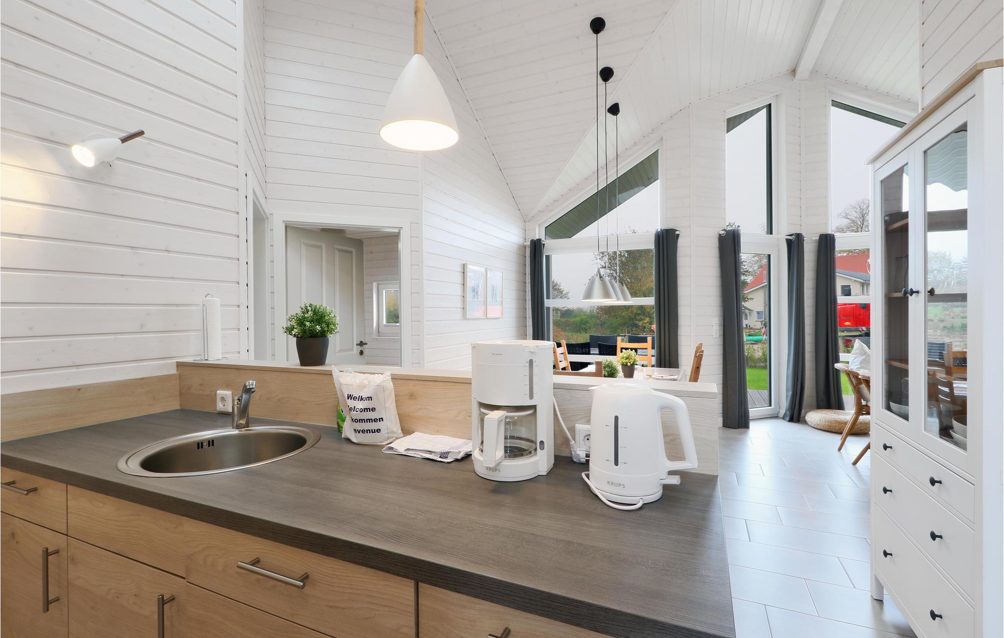 Dette moderne feriehus af træ Seezauber giver god plads til fem voksne og tre børn. Her er loft til kip og store vinduer, der giver en rummelig og lys atmodsfære. Den maritime indretning i lyse farver bidrager også til den hyggelige stemning.