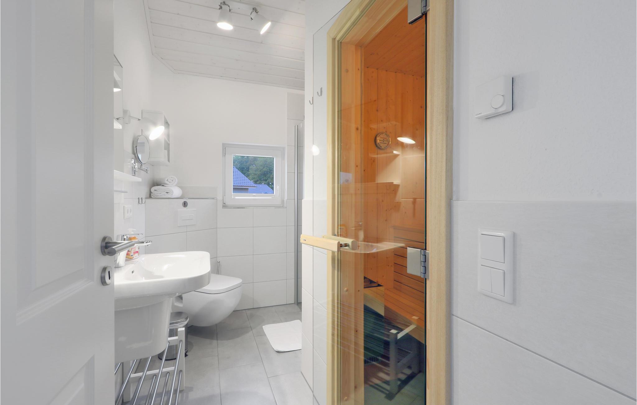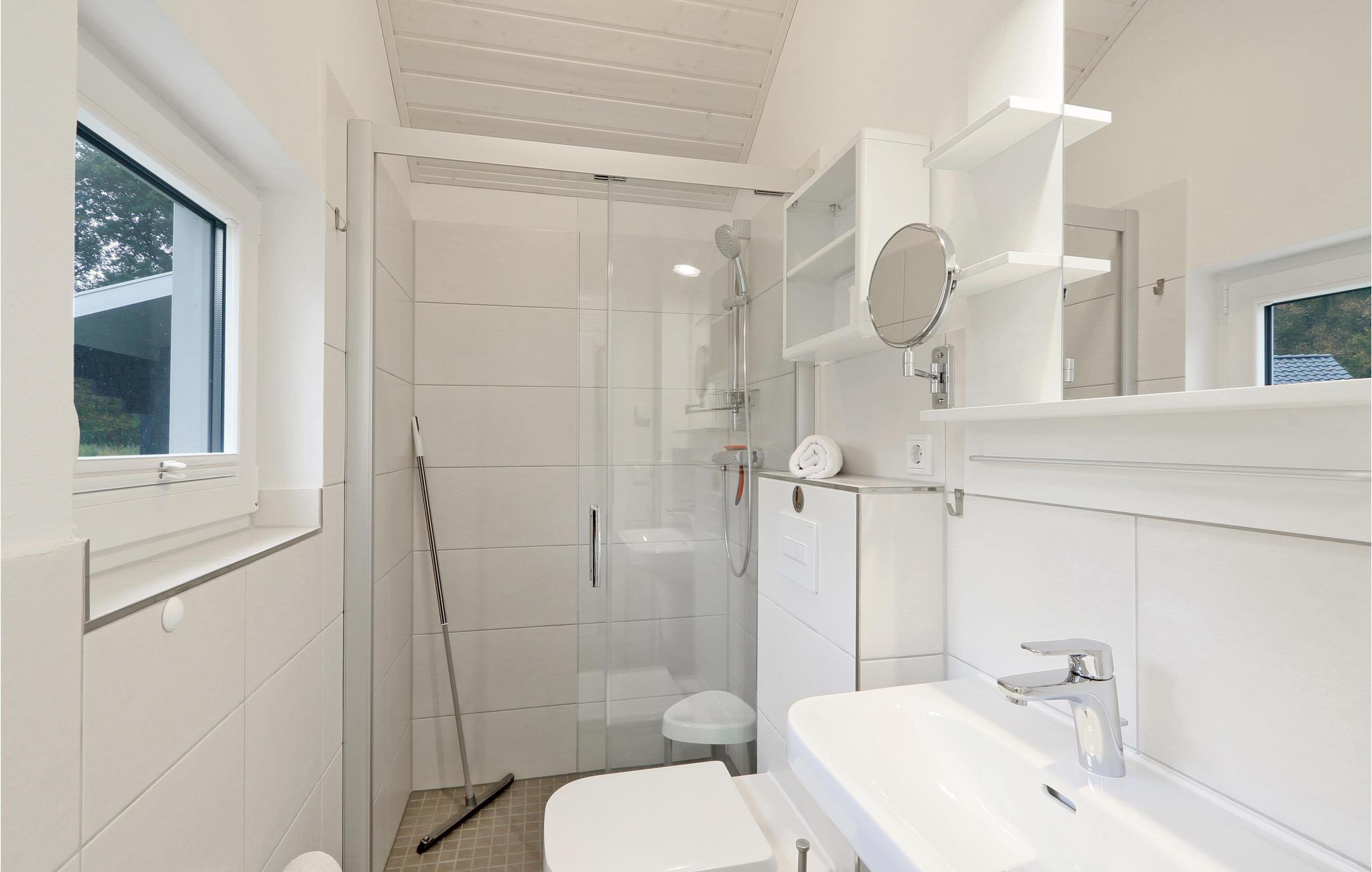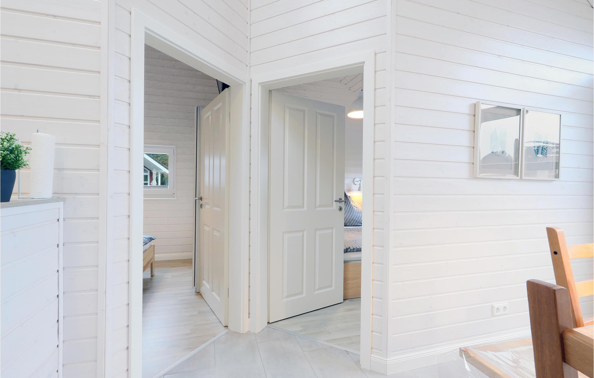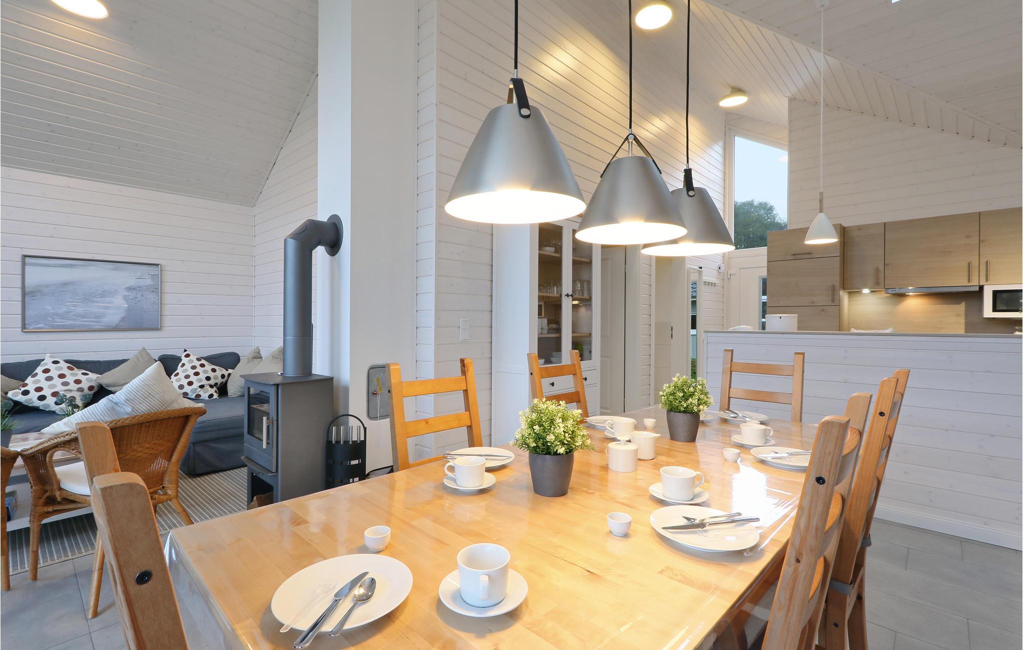 Dette moderne feriehus af træ Seezauber giver god plads til fem voksne og tre børn. Her er loft til kip og store vinduer, der giver en rummelig og lys atmodsfære. Den maritime indretning i lyse farver bidrager også til den hyggelige stemning.