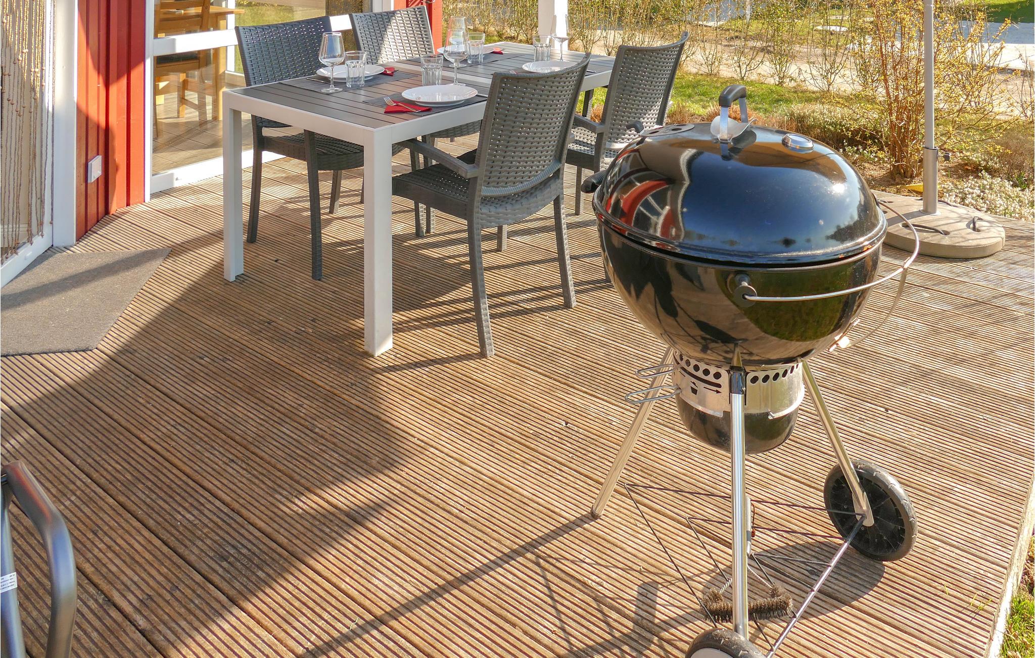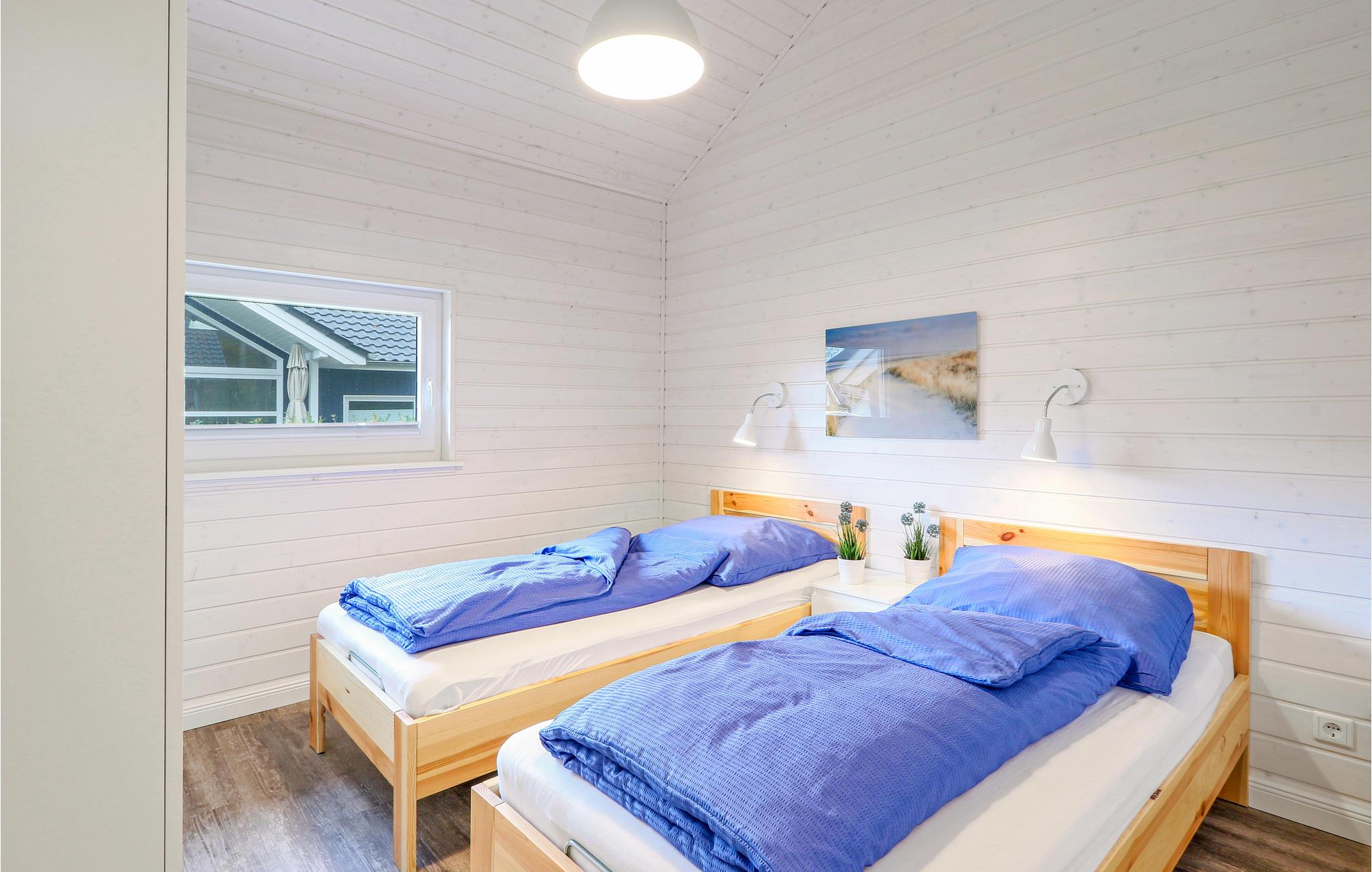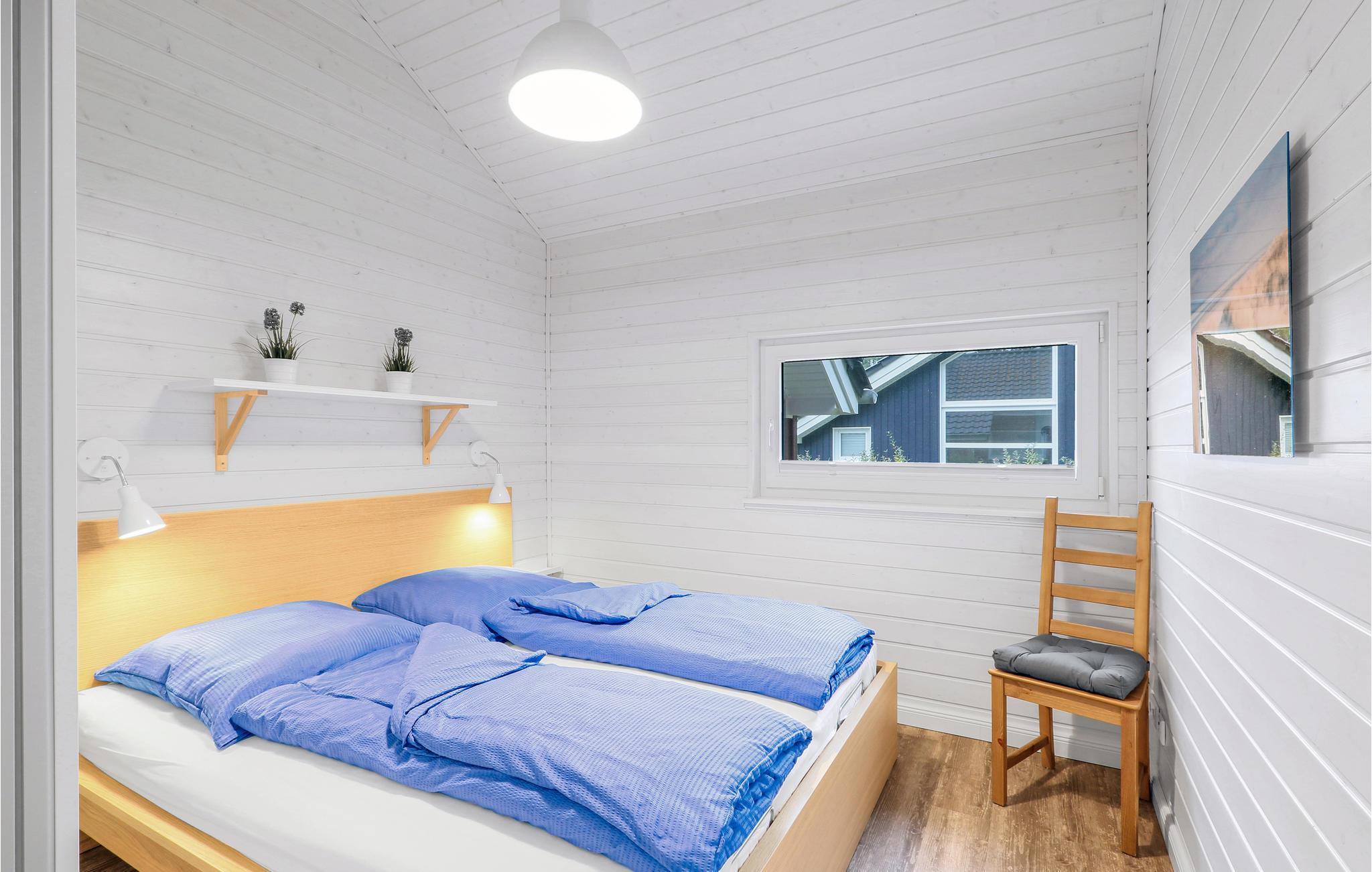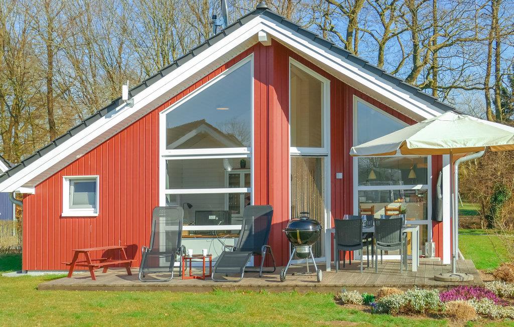 Dette moderne feriehus af træ: Waldliebe giver god plads til fire voksne og et barn under fire år. Her er loft til kip og store vinduer, der giver en rummelig og lys atmodsfære. Den maritime indretning i lyse farver bidrager også til den hyggelige stemning.