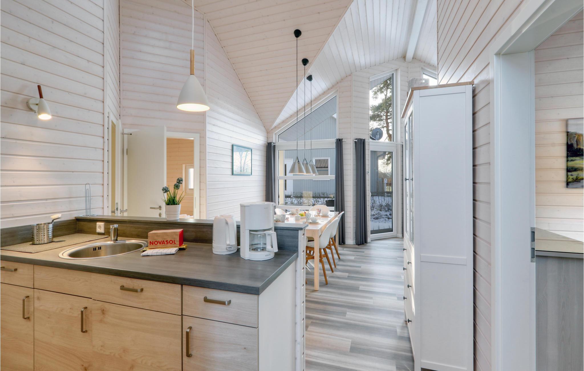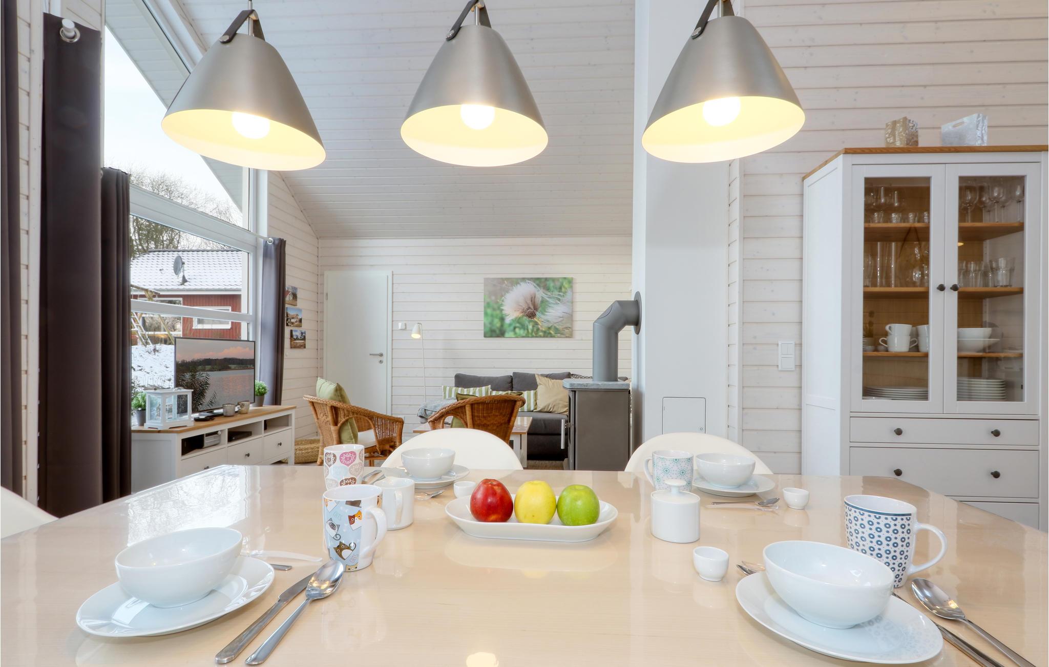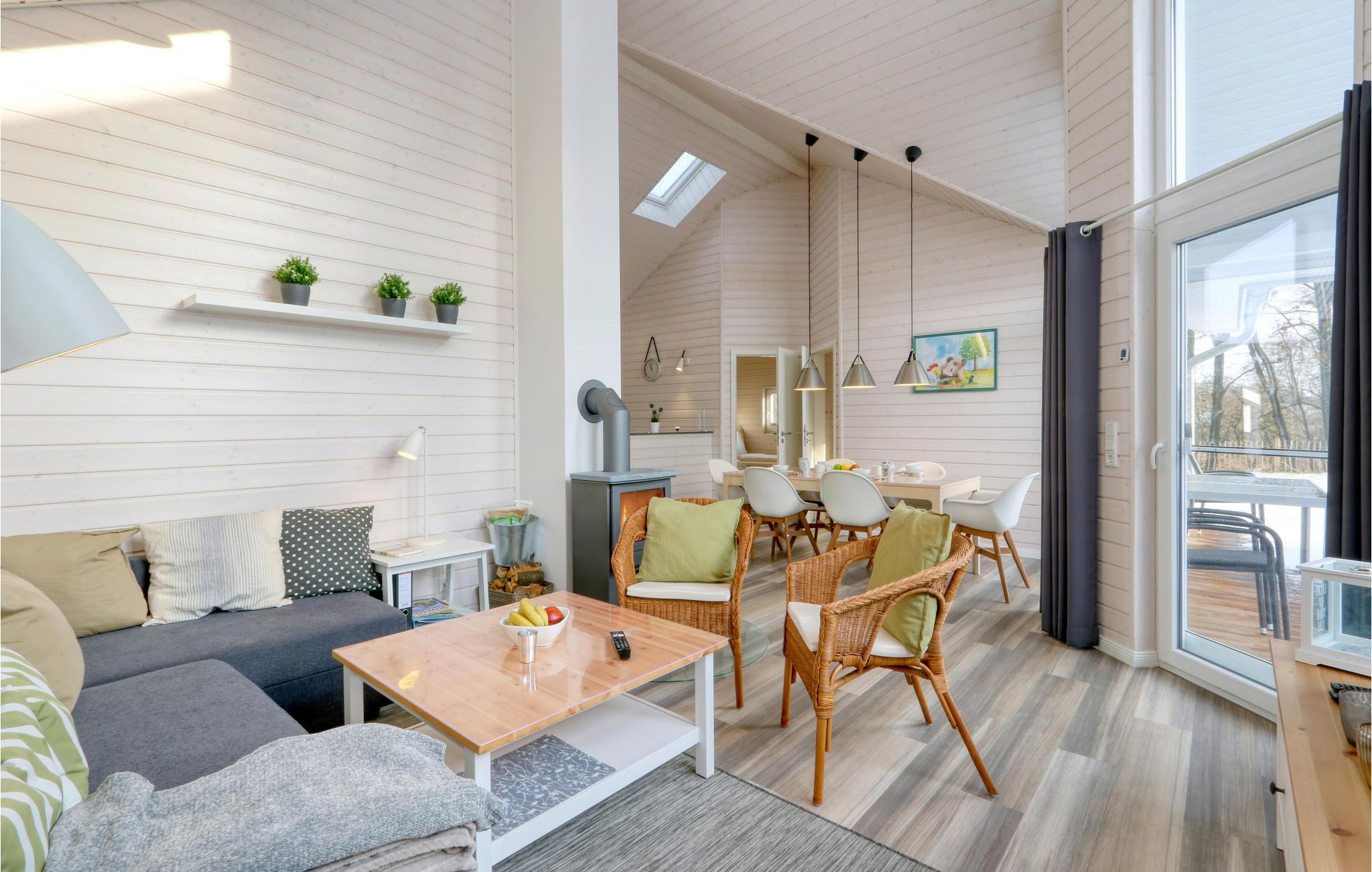 Det moderne træhus er opført i skandinavisk stil og har plads til seks gæster. Husets sauna er et skønt sted at slappe af. Om aftenen kan I finde jer til rette foran brændeovnen, spil brætspil, planlægge aktiviteter til næste dag og lytte til de knitrende flammer.