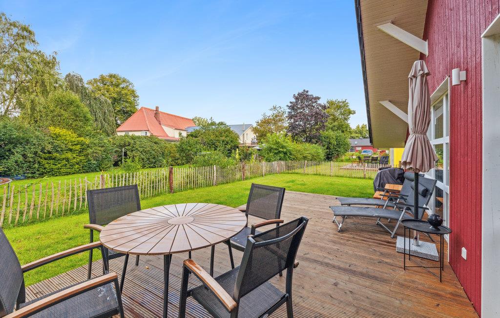 På den store terrasse kan I slappe af og spise morgenmad med hele familien. Så slap af på liggestolene og læs en god bog, mens børnene leger på græsplænen.