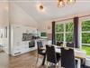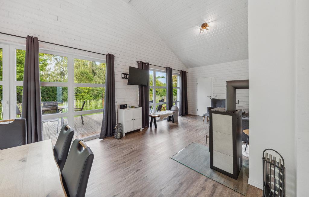 Det moderne træhus byder jer og familien velkommen med sin skandinaviske stil og komfortable møbler. Brug den lyse stue med højt til loftet som et naturligt samlingspunkt for familien, hvor I kan slappe af foran tv'et, spille spil ved spisebordet eller fremtrylle jeres yndlingsretter. På regnfulde dage kan I varme jer i saunaen og derefter finde jer tilpas foran pejsen i opholdsstuen.