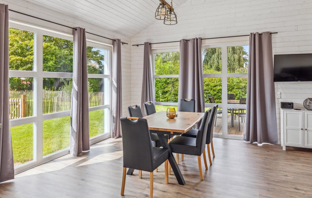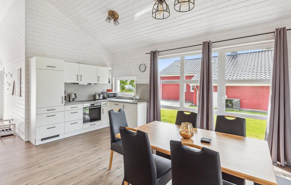 Det moderne træhus byder jer og familien velkommen med sin skandinaviske stil og komfortable møbler. Brug den lyse stue med højt til loftet som et naturligt samlingspunkt for familien, hvor I kan slappe af foran tv'et, spille spil ved spisebordet eller fremtrylle jeres yndlingsretter. På regnfulde dage kan I varme jer i saunaen og derefter finde jer tilpas foran pejsen i opholdsstuen.