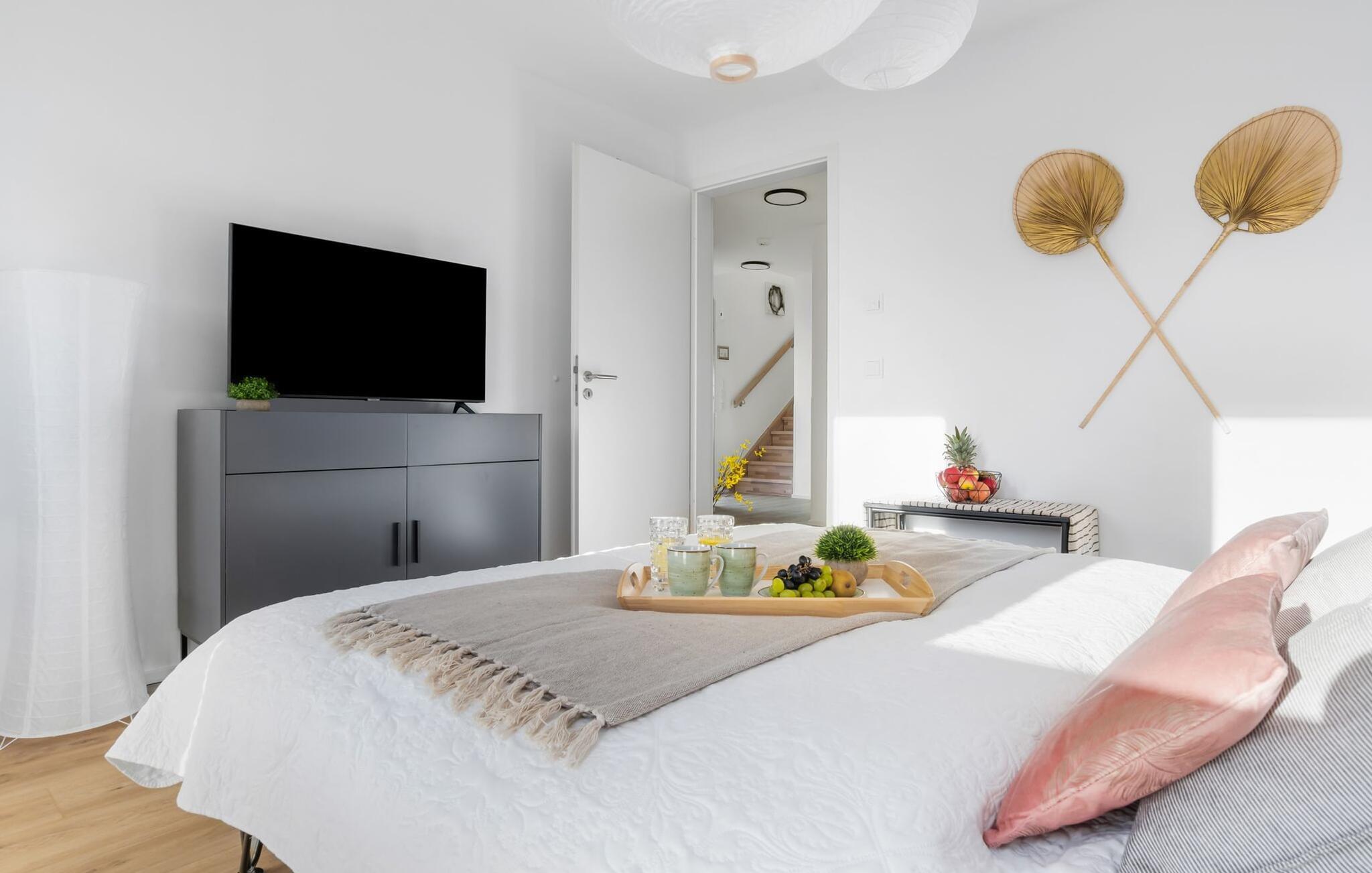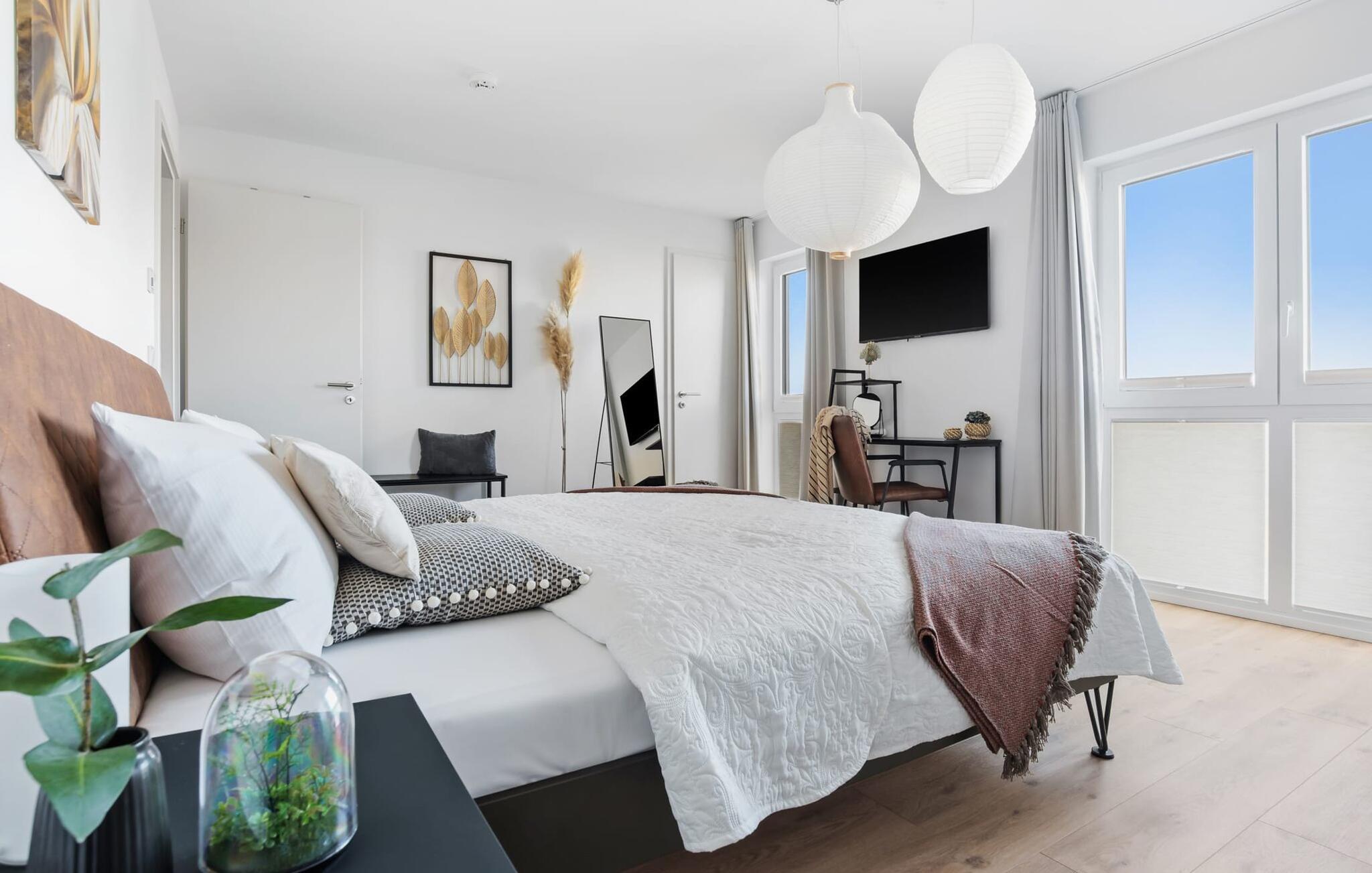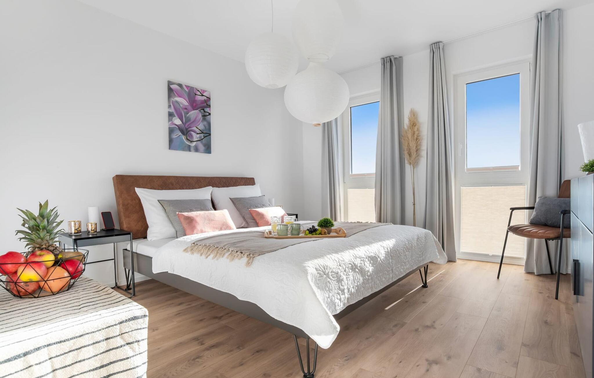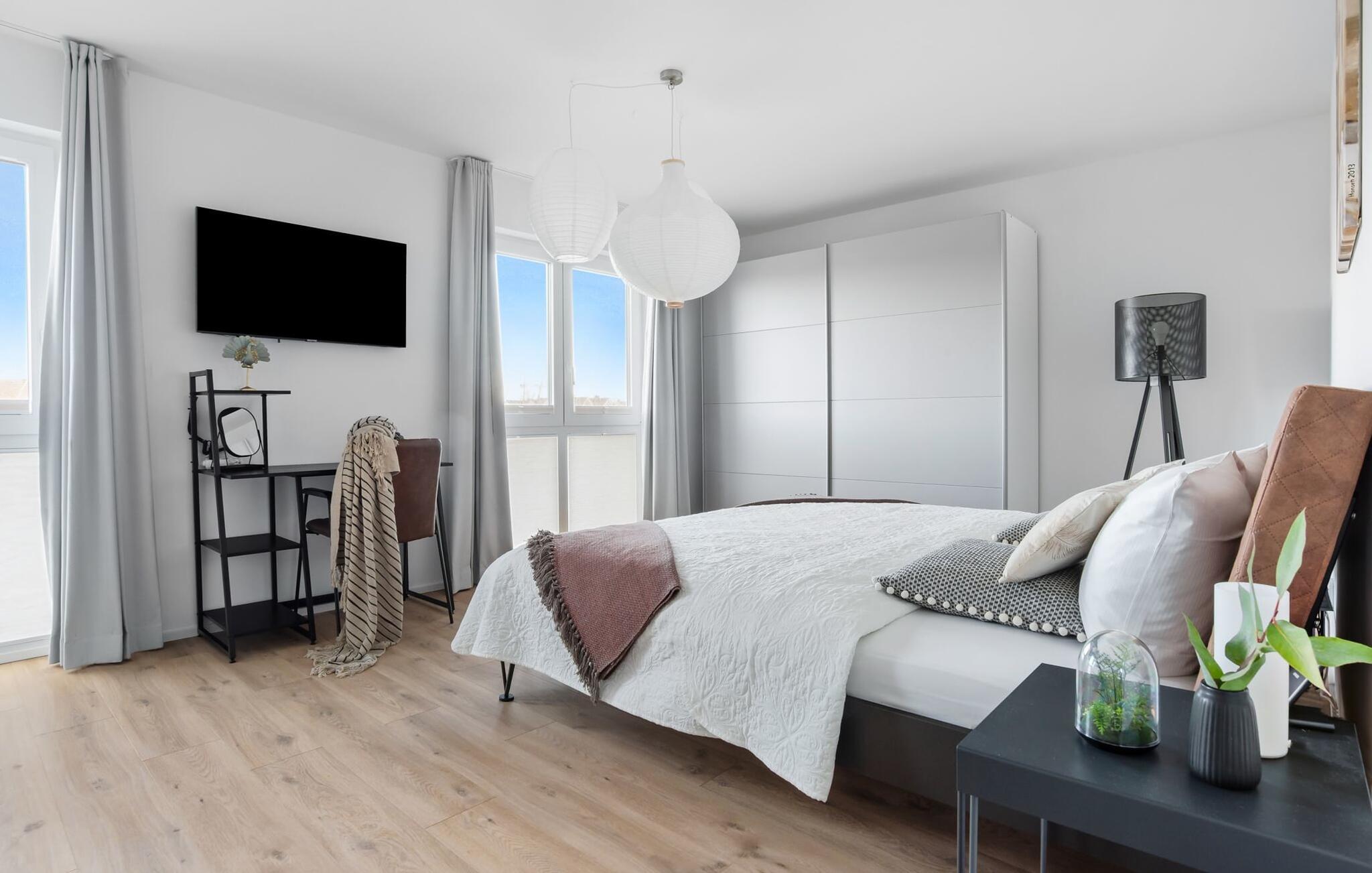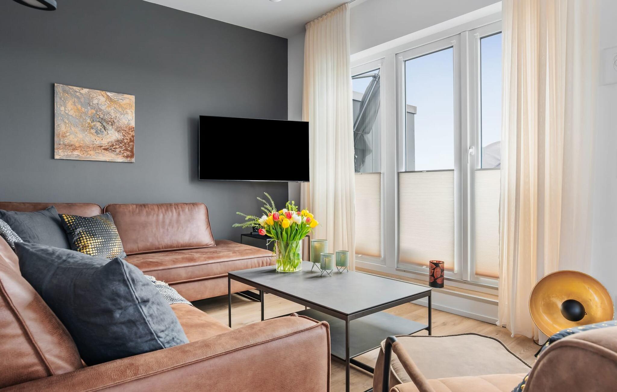 de magiske omgivelser i feriestedet Olpenitz ved Østersøen venter det eksklusive ferieloft Ines på dig, en rummelig etagelejlighed, der strækker sig over 1. og 2. sal og tilbyder et uforlignelig tilflugtssted for jeres ferie. Sandstranden Weidefelder med kiosk, restaurant og strandstole ligger i gåafstand og er et attraktivt rejsemål på alle tider af året. Minigolfbanen med maritimt tema ligger også i umiddelbar nærhed og nydes af både unge og gamle. Lystbådehavnen og havnepromenaden med supermarked og restaurant kan også nås på få minutter til fods. I kommer ind på Ines feriehems på første sal, som rummer soveafdelingen. Tre smagfuldt designede soveværelser inviterer jer til at blive her, hvoraf to er udstyret med komfortable dobbeltsenge og det tredje med to enkeltsenge, der venter på at give jer en afslappende nat. Det rummelige badeværelse på denne etage imponerer ikke kun med et forfriskende brusebad, men også med en infrarød sauna (varmekabine), der lover afslapning og wellness. Den åbne stue åbner op på anden sal og venter på jer med et fuldt udstyret køkken til de højeste standarder. Køkkenet er hjertet af kulinariske lækkerier og hyggelige madlavningsaftener. I tilknytning til køkkenområdet ligger den hyggelige opholdsstue, som byder på en indbydende opholdsstue. Den smagfulde indretning i minimalistisk asiatisk stil giver hele hemsen en harmonisk og beroligende atmosfære. I alt fire fjernsyn, i hvert soveværelse og i stuen, tilbyder underholdning på højeste niveau. Udsigten fra stuen fører til en rummelig terrasse, hvorfra man kan overskue saltvandsengene med deres mangfoldige flora og fauna. Med lidt held vil I opleve det naturlige liv og se hjorte eller kaniner i deres naturlige miljø. På denne etage finder I et andet badeværelse med badekar, som runder følelsen af og sikrer et afslappende ophold på alle tider af året. Ferienloft Ines ferielejlighed tilbyder også to private parkeringspladser direkte foran huset, som gør det muligt for jer at rejse komfortabelt. Den varme invitation går også til vores firbenede venner, da hunde er velkomne i denne eksklusive bolig. WiFi er også tilgængeligt i hele lejligheden, så I altid kan holde forbindelsen til verden. Ferieloftet Ines er ikke bare overnatning, men et sted, hvor luksus, natur og afslapning mødes i perfekt harmoni. Forkæl jer selv med et uforglemmeligt ophold ved Østersøen, og lad jer fortrylle af magien ved dette ekstraordinære ferieloft. Vores favoritsted Nyd Østersøbrisen med hele familien på terrassen og reflekter over dagen. Bemærk venligst: OstseeResort Olpenitz er meget populært, og der bygges fortsat i parken. Ikke desto mindre kan I se frem til en 5-stjernet standard og et førsteklasses ophold. Byggeaktiviteterne kommer ikke til at forstyrre jer på ferien, og derfor gives der ikke yderligere afslag i prisen.