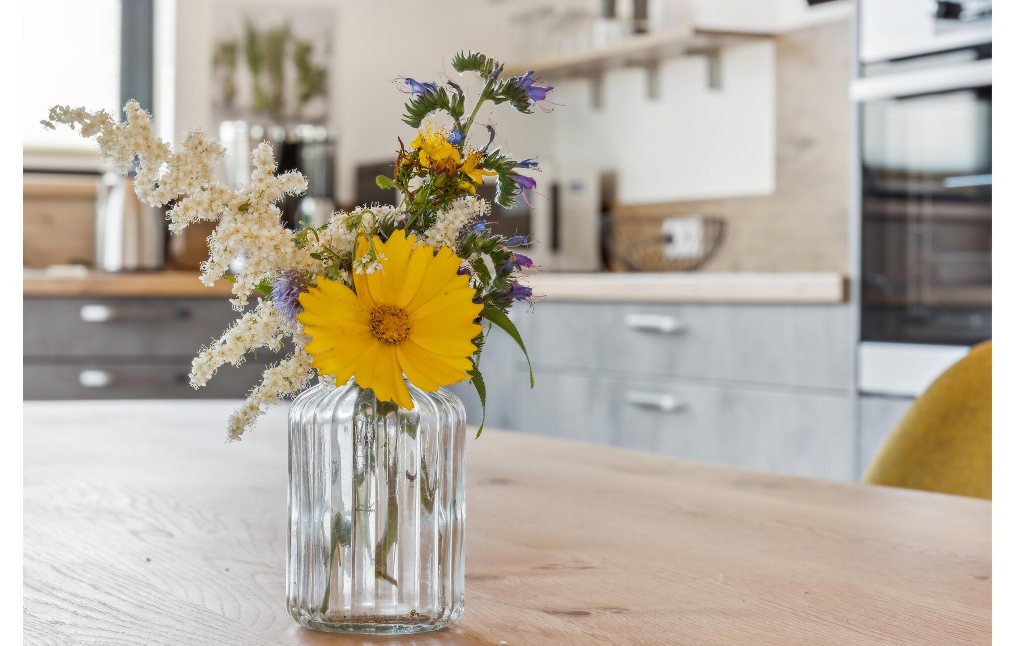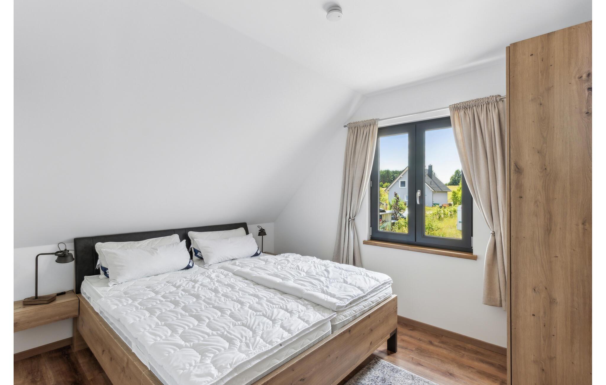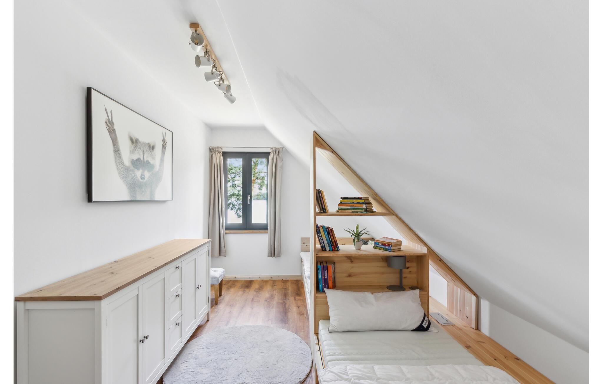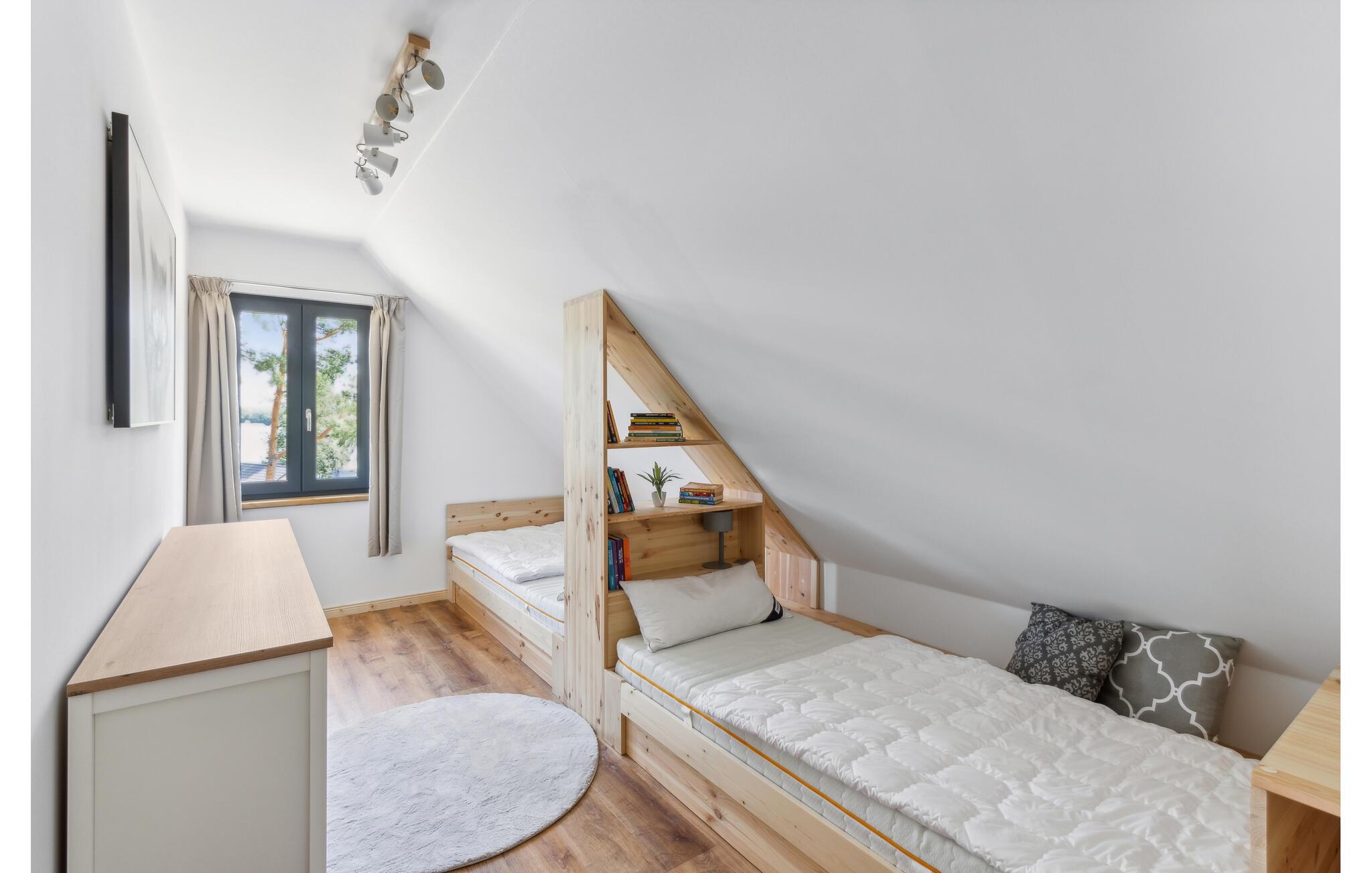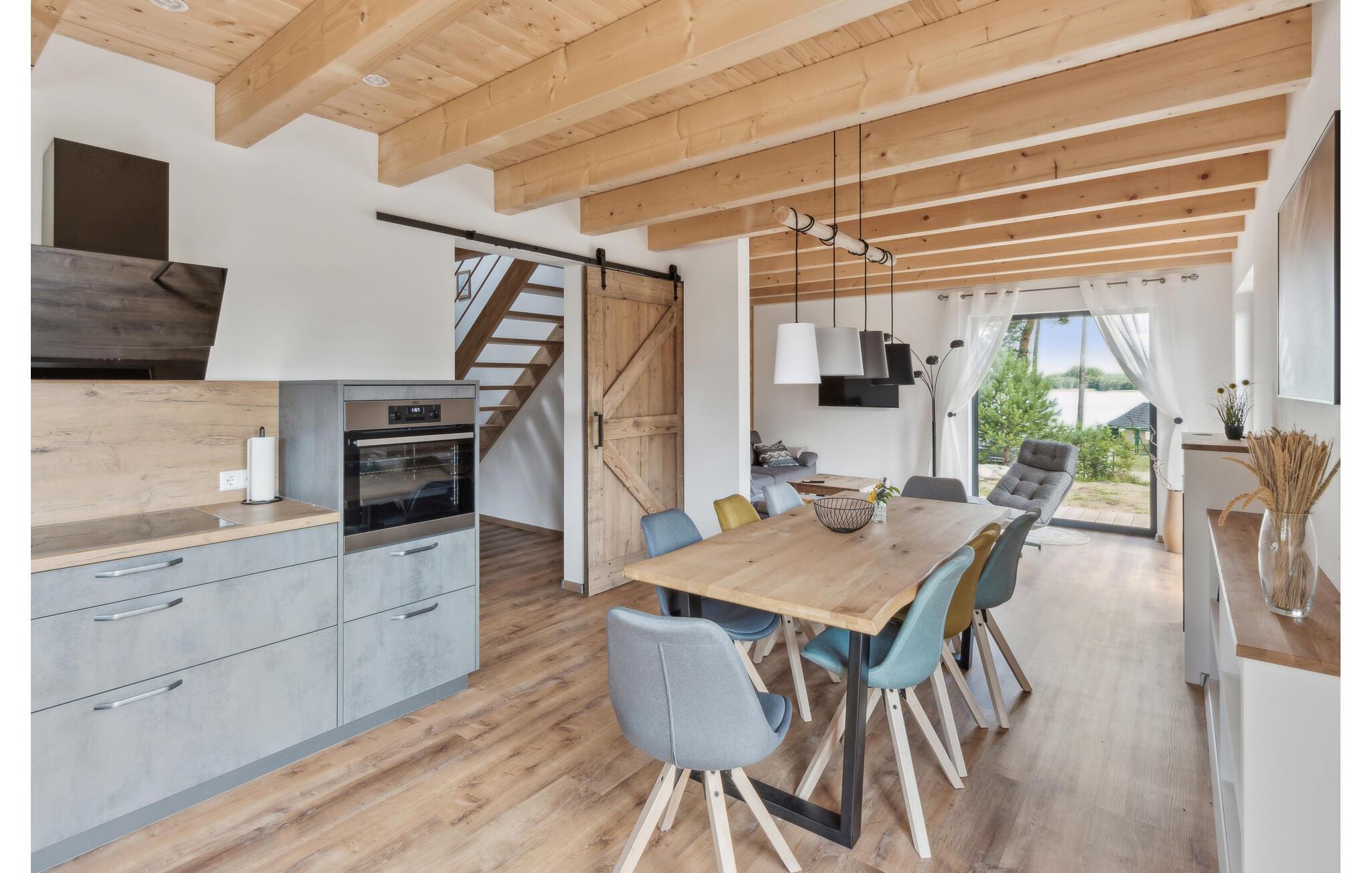 Hvis I er på udkig efter en komfortabel bolig til et ophold med den større familie, og vil I tilmed gerne bo midt i den smukke natur, er I kommet til det helt rette sted. Dette skønne toetagers hus ligger I hjertet af de smukke, skov- og sørige landskaber i området Mecklenburgische Seenplatte. Indvendigt emmer det af kvalitet over hele linjen med rustikke trælofter, velholdte trægulve og et moderne køkken, hvor I kan kræse om livretterne efter en skøn feriedag i naturen. Nyd måltiderne ved det flotte spisebord og ryk over i sofaen med snacks, en god film eller brætspil til langt ud på aftenen. I kan også forkæle kroppen med en aftentur i saunaen. På de lidt køligere dage eller om aftenen sørger den moderne infrarød-radiator for en effektiv og sund varme. Den elektriske pejs i stuen sørger også for en hyggelig stemning.