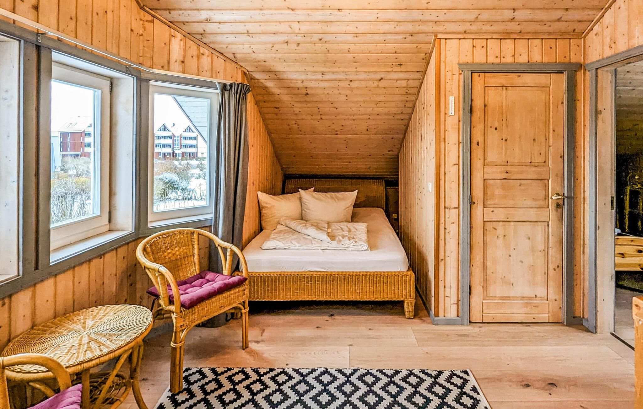 "Wildgans" er et hyggeligt træhus, hvis indretning emmer af komfort over to etager. I stueetagen finder I et lille, personlige wellnessområde med sauna og spabad. I sommermånederne kan I slikke solen på den delvist overdækkede terrasse.
