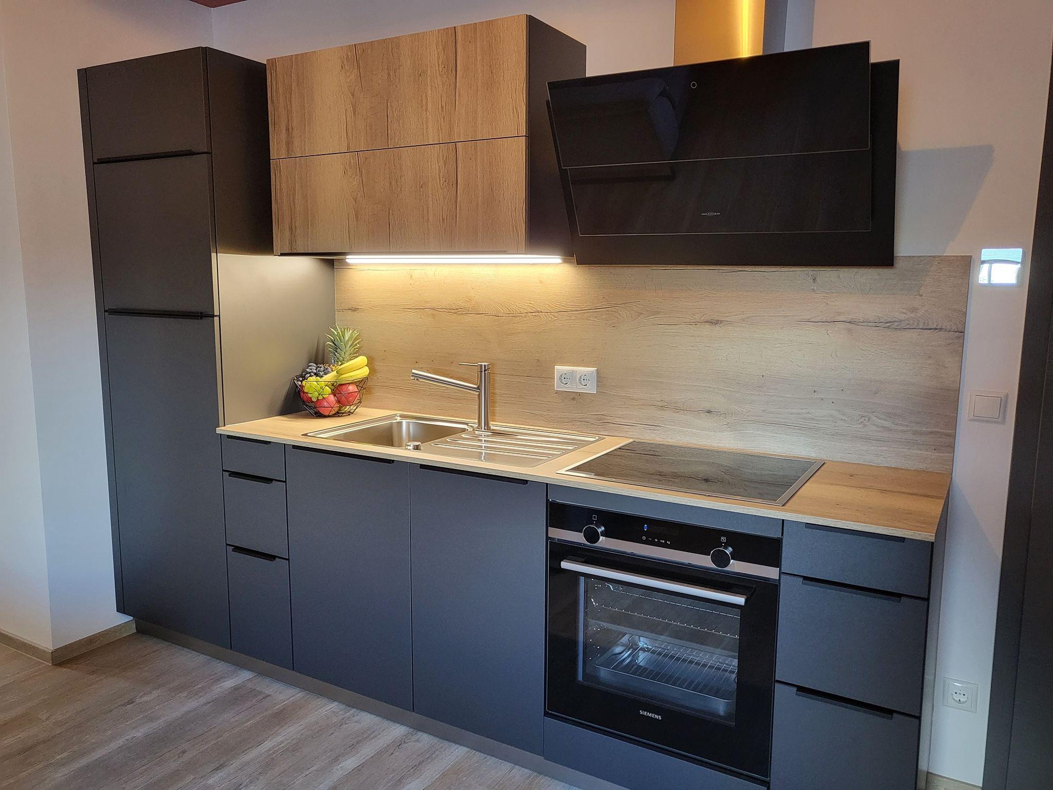 Küche und Wohnzimmer befinden sich in einem Raum und sorgen für eine gemütliche Atmosphäre.