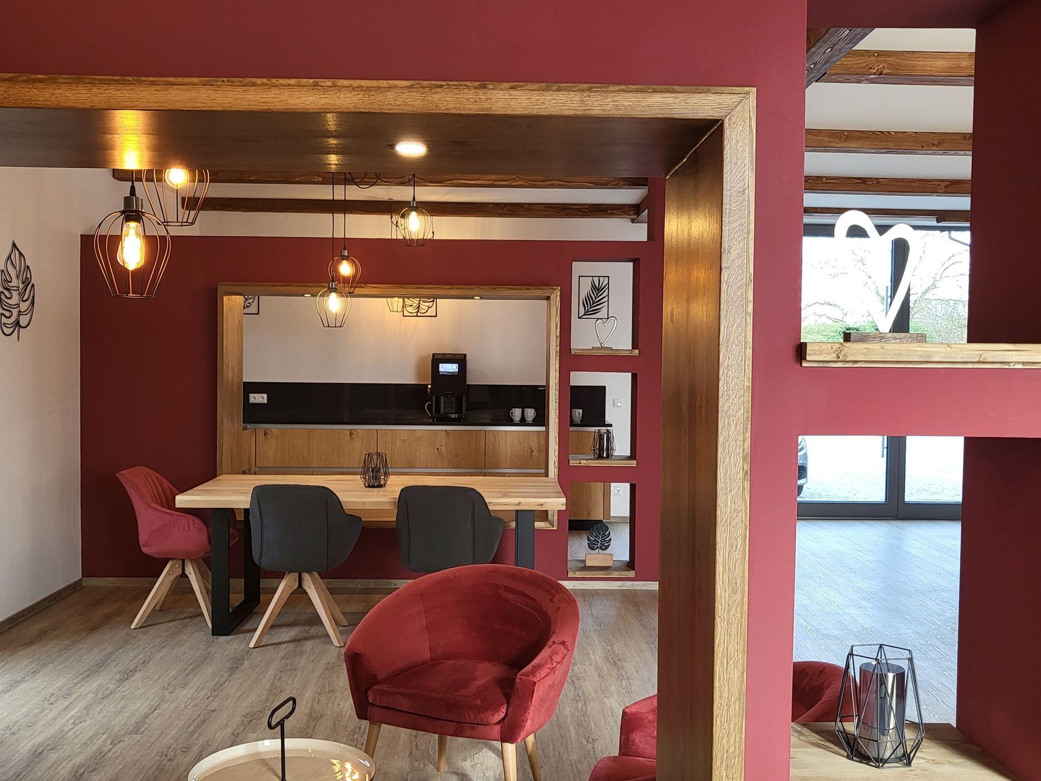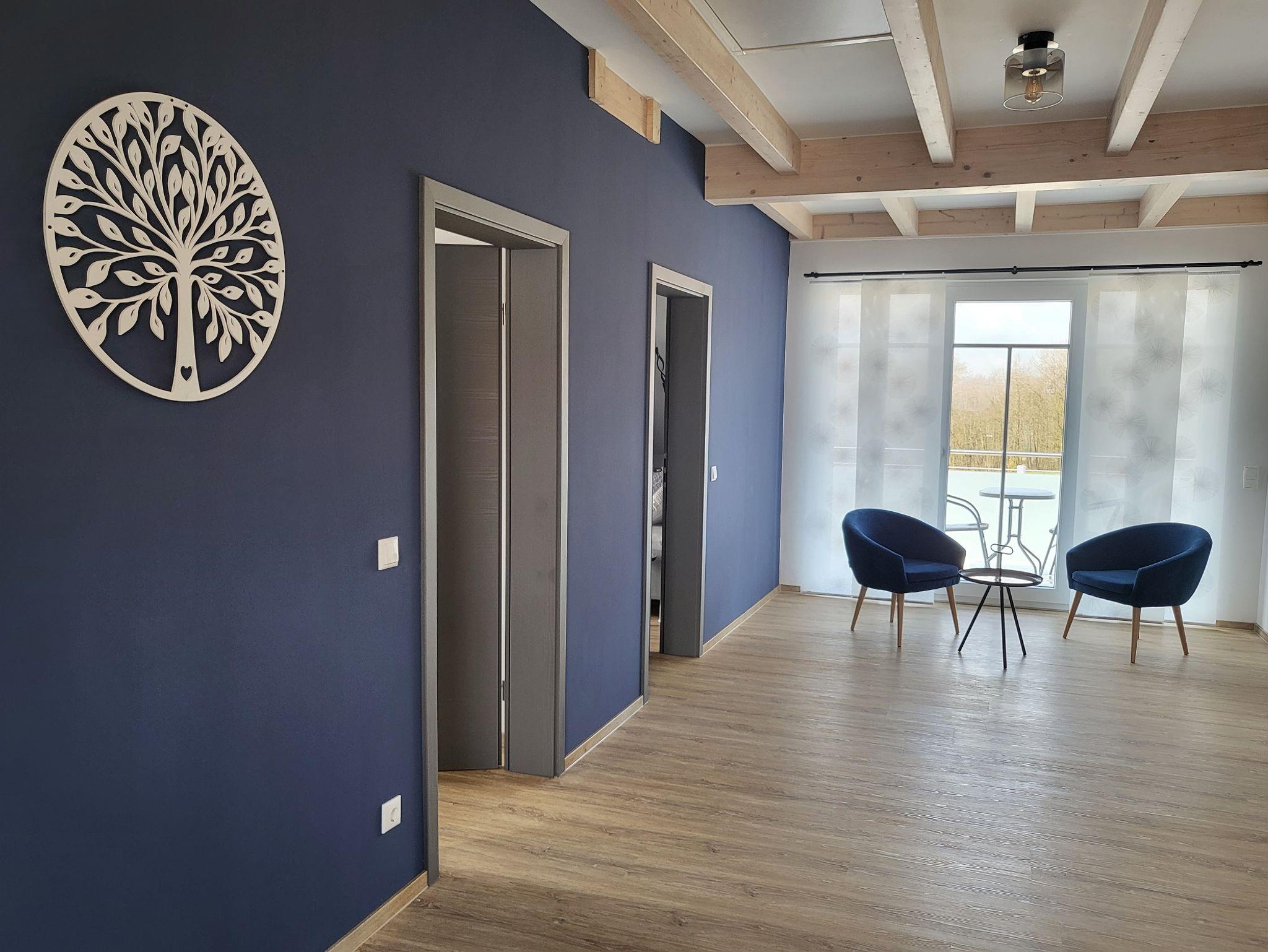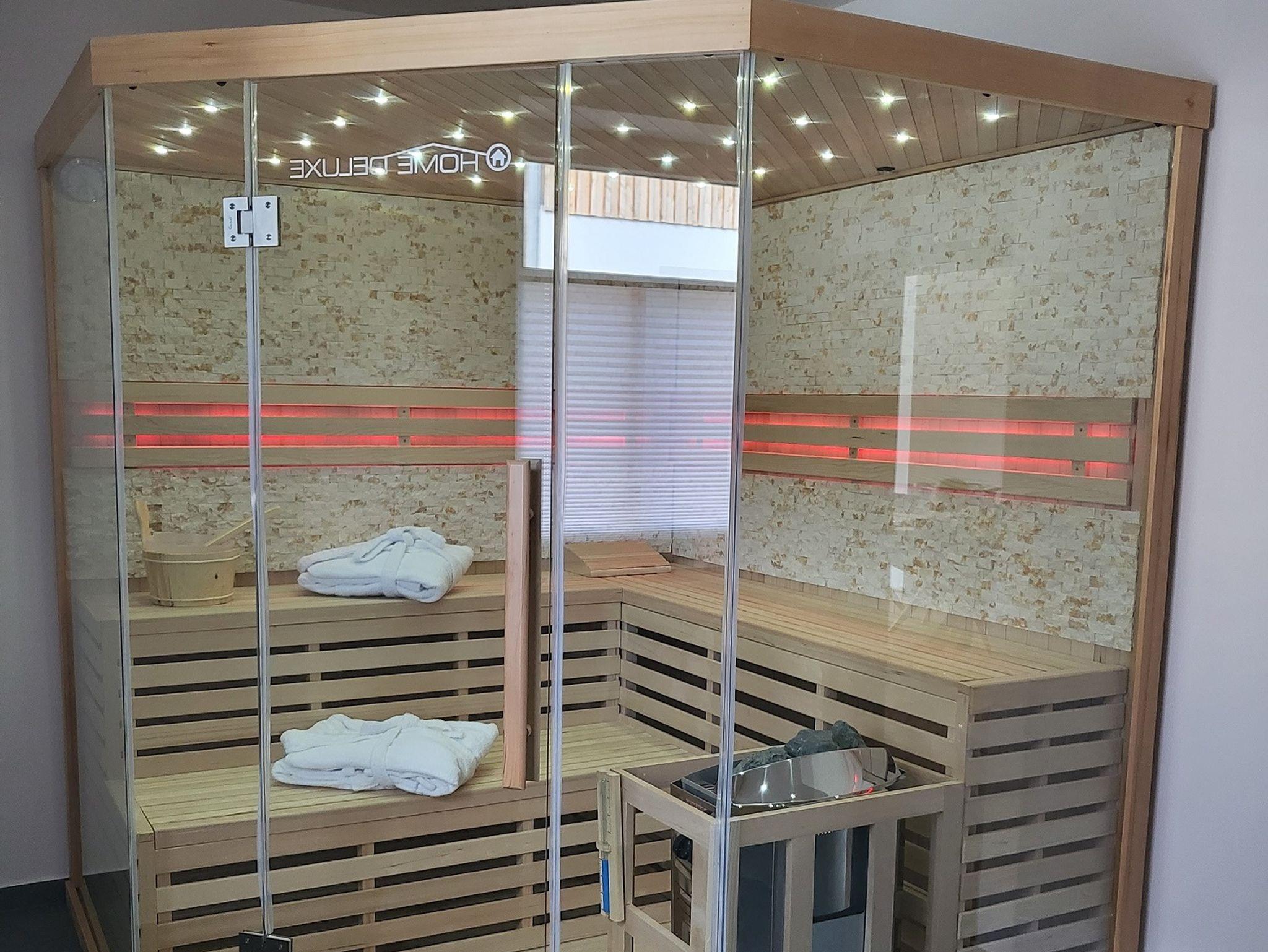 Für das besondere Wohlfühlerlebnis befindet sich im Scheunengebäude ein kleiner Wellnessbereich mit Sauna, Infrarotkabine, Relaxliegen und großer Whirlwanne für 2 Personen. Vom Ruhebereich aus haben Sie Zugang zu einer kleinen Privatterrasse mit Sonnenliegen auf der Sie entspannen können.
