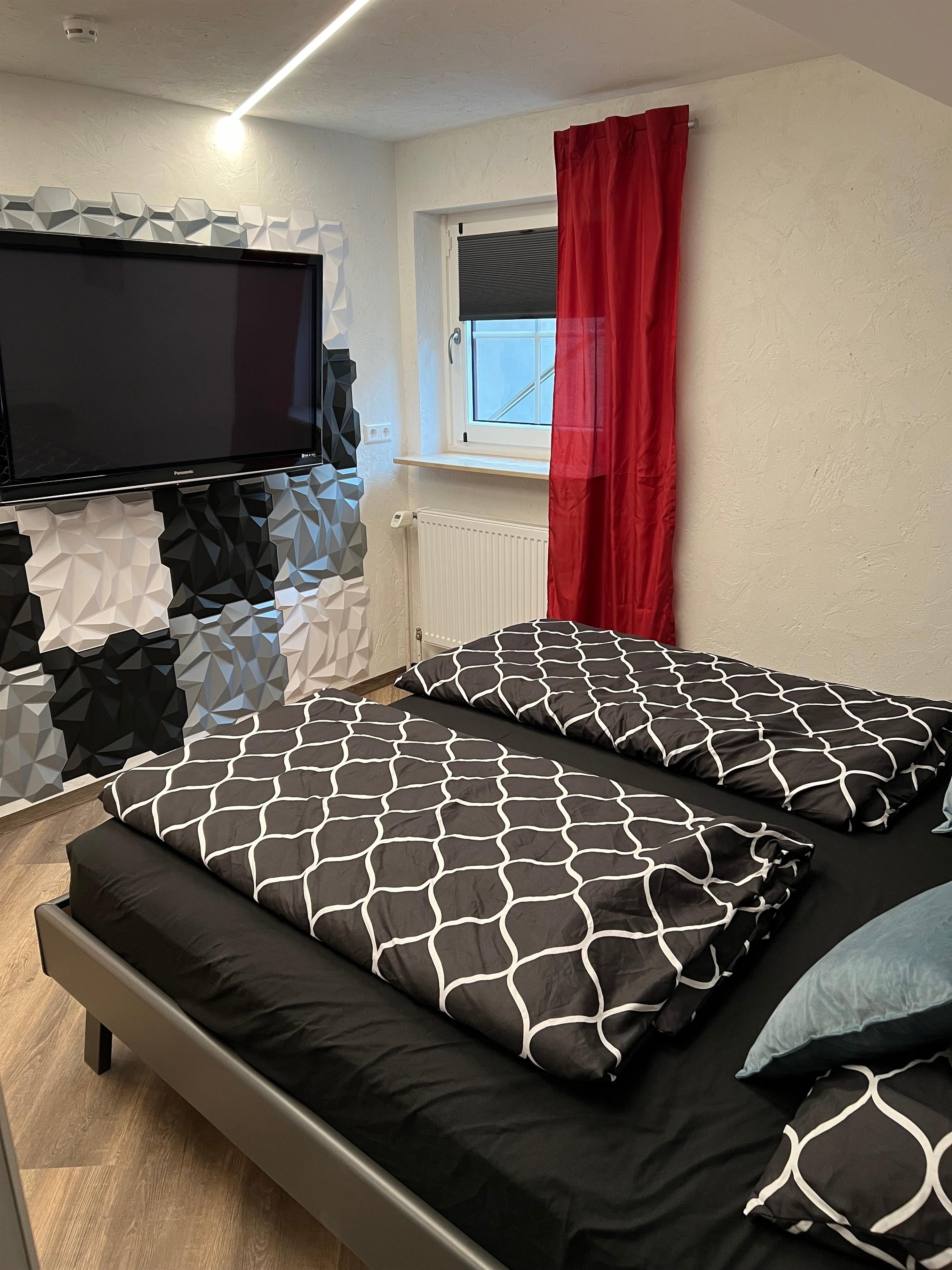 Das Apartment "Josha" befindet sich in Heilbronn (Teilort 2 km von Feuchtwangen entfernt) Es wurde 2024 komplett neu renoviert und hochwertig ausgestattet. Vom Flur aus geht es ins Schlafzimmer mit einem 180 cm breiten Bett mit Bockspringmatratze, Kleiderschrank und TV. Im zweiten Zimmer befindet sich eine voll ausgestattete Küchenzeile, ein Esstisch für 4 Personen sowie eine Couch (welche auch als Schlafcouch verwendet werden kann) und ein 55 Zoll LED TV.