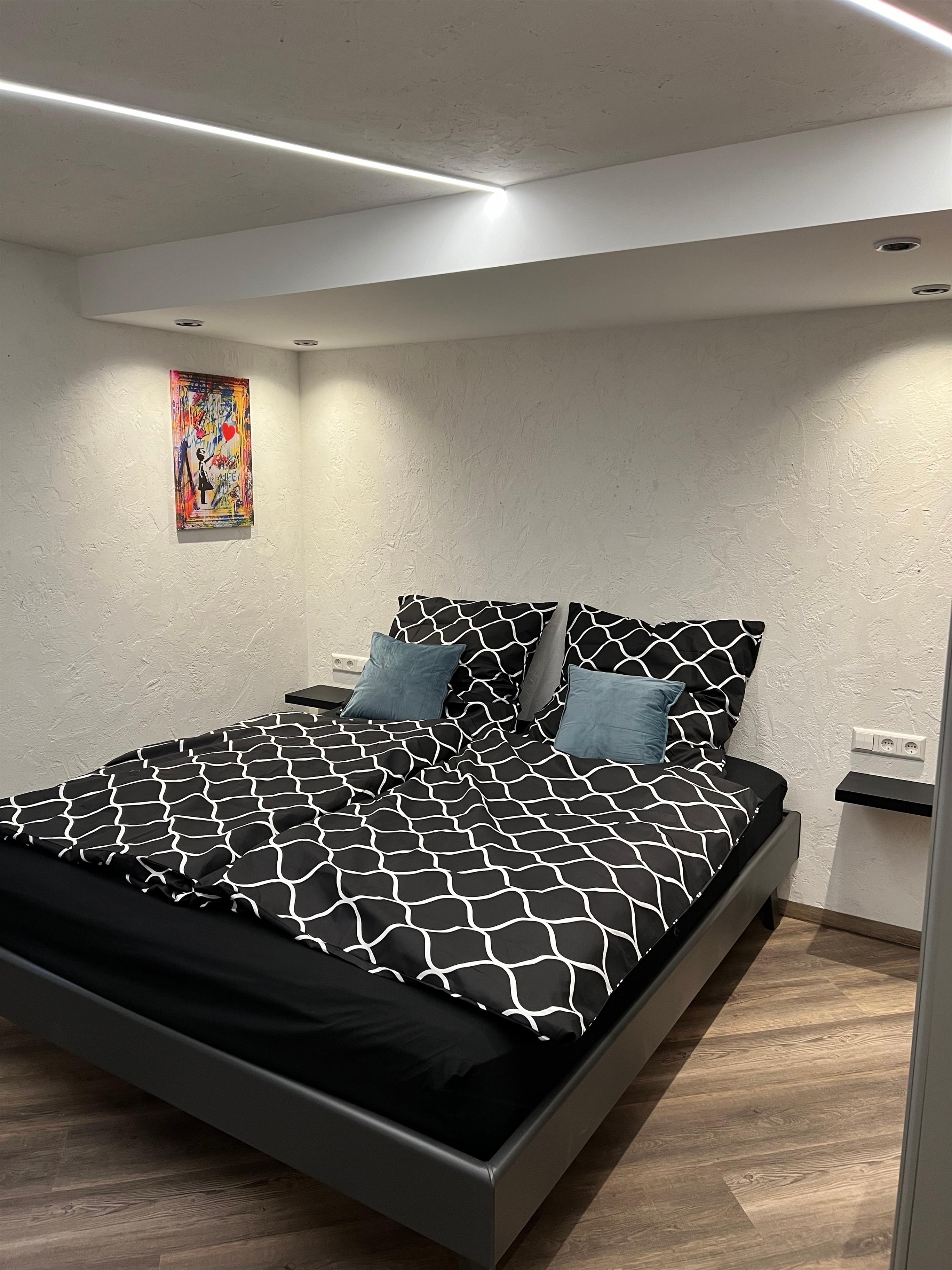 Das Apartment ist komplett neu renoviert und hochwertig ausgestattet. Es besteht aus einem Schlafzimmer, einem Wohnzimmer mit Küche, Essbereich & Couch, sowie einem Bad mit großer Dusche. Es befindet sich im Souterrain, trotzdem hat man in jedem Raum Fenster. Auf dem Grundstück steht ein kostenfreier PKW Stellplatz zur Verfügung.